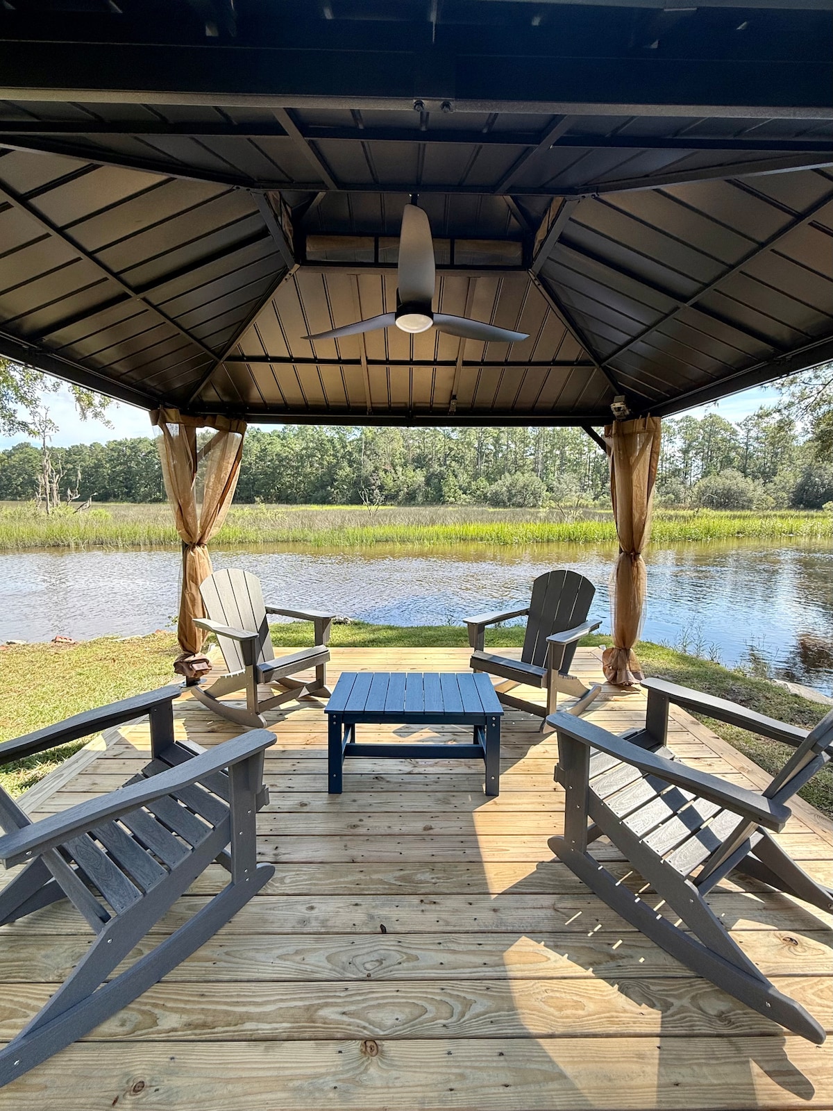 Private Deep Water Dock on the Sapelo River! The main house is approximately 1100 sq ft and features two bedrooms upstairs, each with queen beds and a pull out couch. There is one full bathroom on the upper floor and another on the downstairs level. The 250 sqft “Bunk House” features a twin over full bunk bed, additional full mattress underneath and a futon in classic coastal style. There's a full bath, additional fridge and kitchen sink.