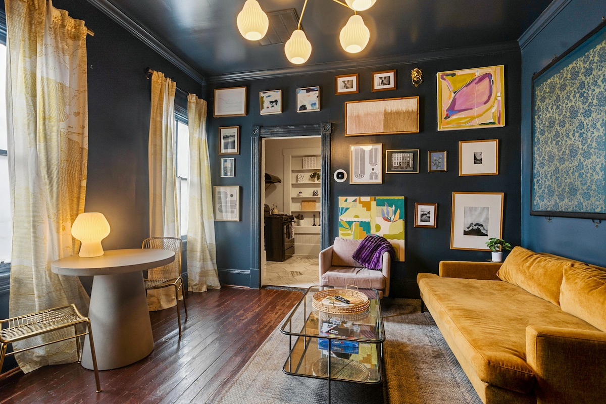 Nestled in downtown Savannah, Vintage Blue Victorian is a charming 2-bedroom, 1-bath first-floor apartment blending historic elegance with modern luxury. Recently renovated, it features vibrant decor, tall ceilings, and large windows that fill the space with natural light. Fun accents and colorful touches create a cheerful, stylish retreat. Perfect for guests seeking comfort and character in a beautifully decorated setting.