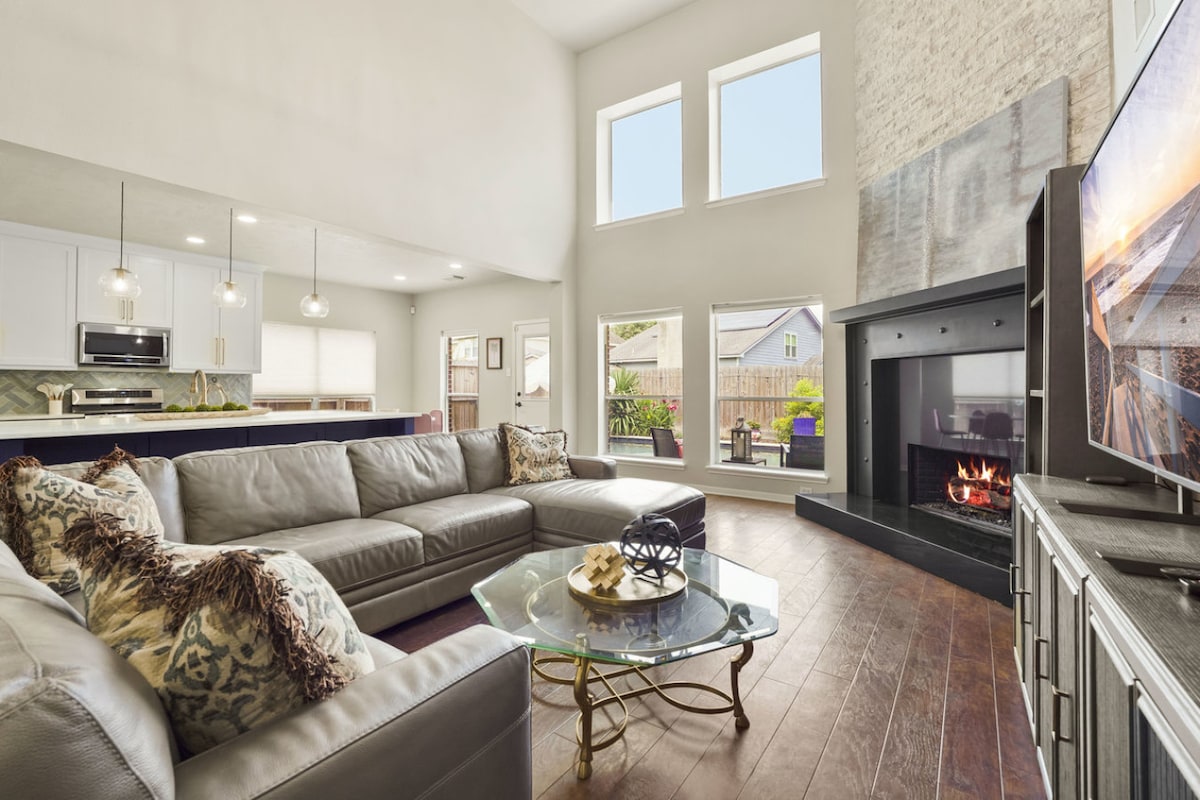 4,000 Sq Ft | Private Backyard w/ Golf Course View | ~ 26 Mi to Downtown Houston Bring the whole family to this spacious 4-bedroom, 2.5-bath retreat in Humble, Texas — the perfect blend of comfort, recreation, and relaxation. Overlooking a scenic golf course, this beautifully furnished home features a private backyard, new modern decor, and access to Walden on Lake Houston amenities, including a pool, hot tub, golf course, marina, and sports courts. Spend the day boating on Lake Houston, exploring nearby parks, or enjoying a friendly game of pool or ping-pong in the game room. After a day of fun, fire up the gas grill and dine alfresco on the patio, then unwind with a movie night in the cozy living room featuring a Smart TV, Sonos soundbar, and gas fireplace. With a fully equipped kitchen, dedicated workspace, and toy room for kids, this home has everything you need for a memorable family getaway. Bedroom 1: King Bed | Bedroom 2: King Bed | Bedroom 3: Queen Bed | Bedroom 4: Queen Bed Highlights: – Access to Walden on Lake Houston amenities (pool, hot tub, golf, tennis, marina) – Smart TV, Sonos soundbar, pool/ping-pong table, board games – Fully equipped kitchen with Keurig, blender, and cooking basics – Free WiFi, washer/dryer, central A/C, patio with dining and grill