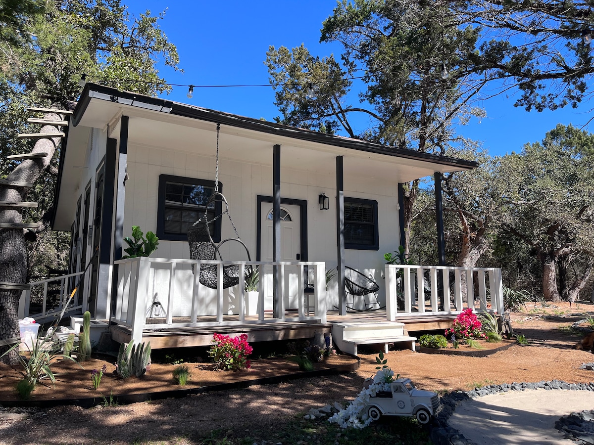 About this Space This quaint and quiet guesthouse is nestled in the heart of the Texas Hill Country. Guests have access to the family private pool and spa. It features a lofty large room that includes, sleeping, living, and dining area, as well as fully equipped kitchen. This guesthouse is right for you if you want to get away from the hustle and bustle of city life.