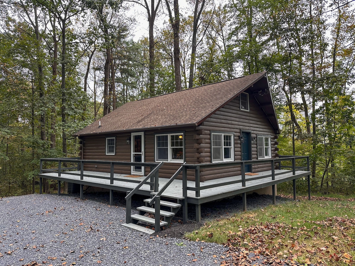 The traditional log cabin is located on 25 acres of mostly wooded terrain in the scenic rural countryside of Wolfsville, Maryland, less than an hour and a half from D.C./Baltimore. The hosts live on the property, but the cabin is situated where it feels very private and you do not see the hosts house from the cabin. The cabin faces the woods and there is a private trail down to the creek. Take a break from everyday life, and escape to this unique and quiet retreat in the Catoctin Mountains.