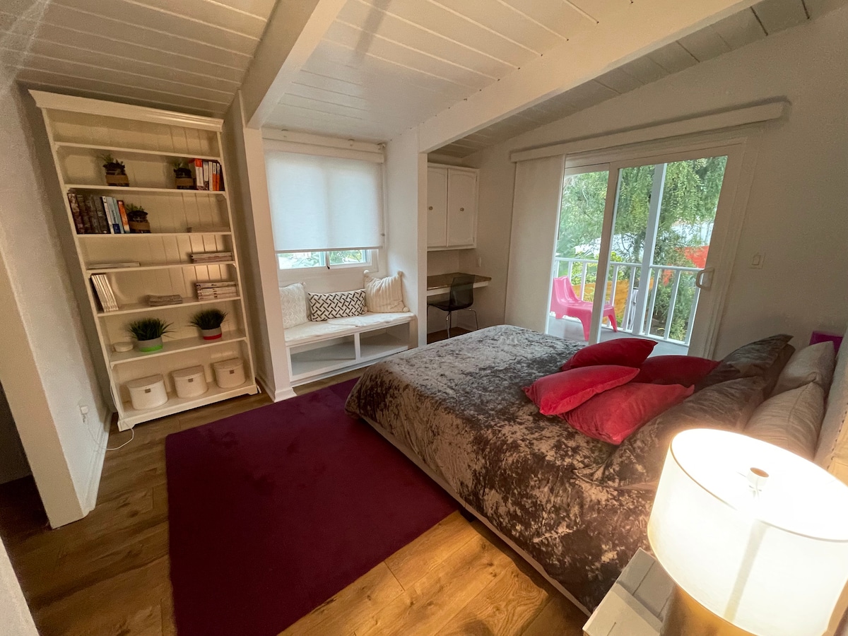 Bright and breezy 1 bd/ 1 ba casita with outdoor balcony. The perfect place for a romantic getaway. Home is 5-10 mins to many attractions including Sea World, SD Zoo, Petco Park Ocean Beach, Pacific Beach, Liberty Station and the airport. World class shopping at Fashion Valley Mall, take a fishing trip from Shelter Island, or go surfing at the famous Ocean Beach! We also strive to always use 100% Vegan and Cruelty - Free soaps and other products in our houses and we're 100% solar! *NO PARTIES