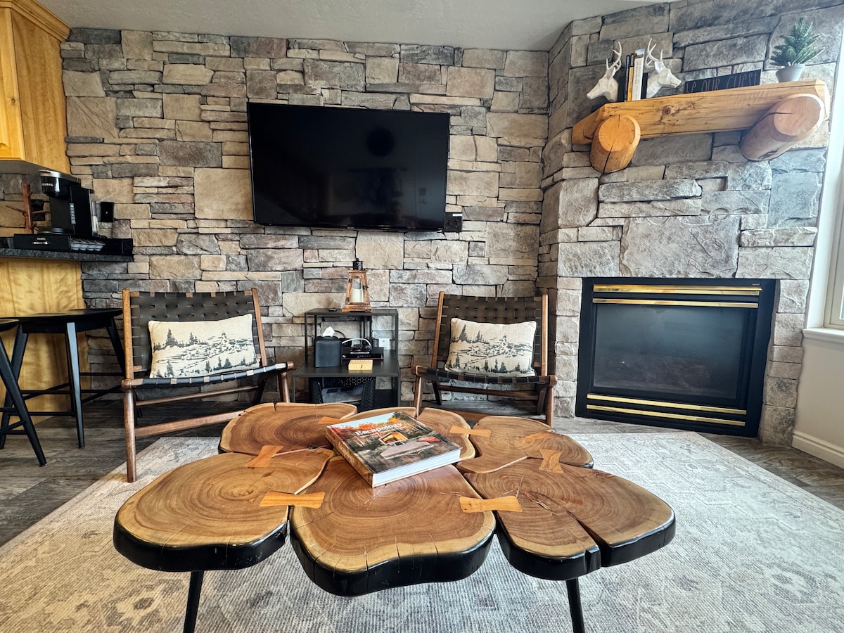 Welcome to your mountain retreat — a haven of comfort, convenience, and pristine cleanliness designed for a 5-star experience. Imagine yourself unwinding beside the cozy gas fireplace, a cup of freshly brewed coffee from the Keurig in hand, as you plan your next alpine adventure. Inside, enjoy modern comforts; smart TVs, complimentary Wi-Fi, and thoughtful touches throughout. Step outside onto one of two private balconies, each offering stunning views of the surrounding peaks and landscape.