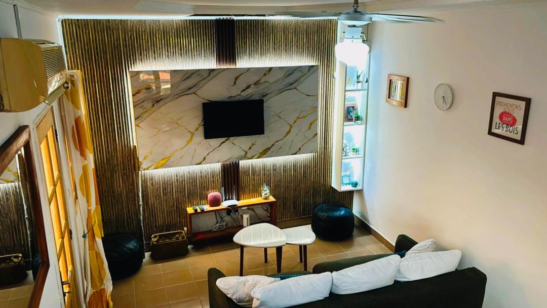 Appartement haut standing situé au cœur du quartier Louis à Libreville. Profitez de deux chambres spacieuses, d’un grand salon lumineux, d’une cuisine équipée et de deux terrasses idéales pour se détendre. Wi-Fi haut débit, climatisation, parking sécurisé et service de ménage disponibles. Emplacement premium, parfait pour voyageurs d’affaires ou séjours détente.