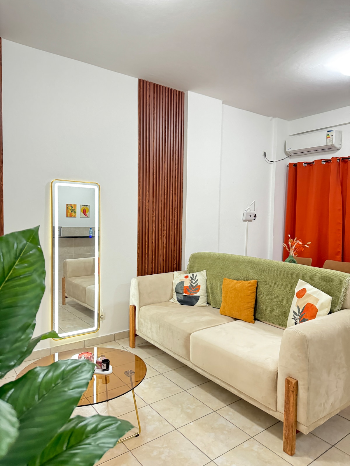 Brand New Building —You'll have a great time at this comfortable home. Heavily guarded with a 24hr guardian and gated parking. Spacious 2 bedroom/ 2.5 baths Condo. Within walking distance to the famous water park Club Saoti with pools, nice restaurants, yoga, and a workout center. Walking distance to the beach for fresh coconuts, 5 mins to the airport, grocery stores, and local markets. Every room has air conditioning.