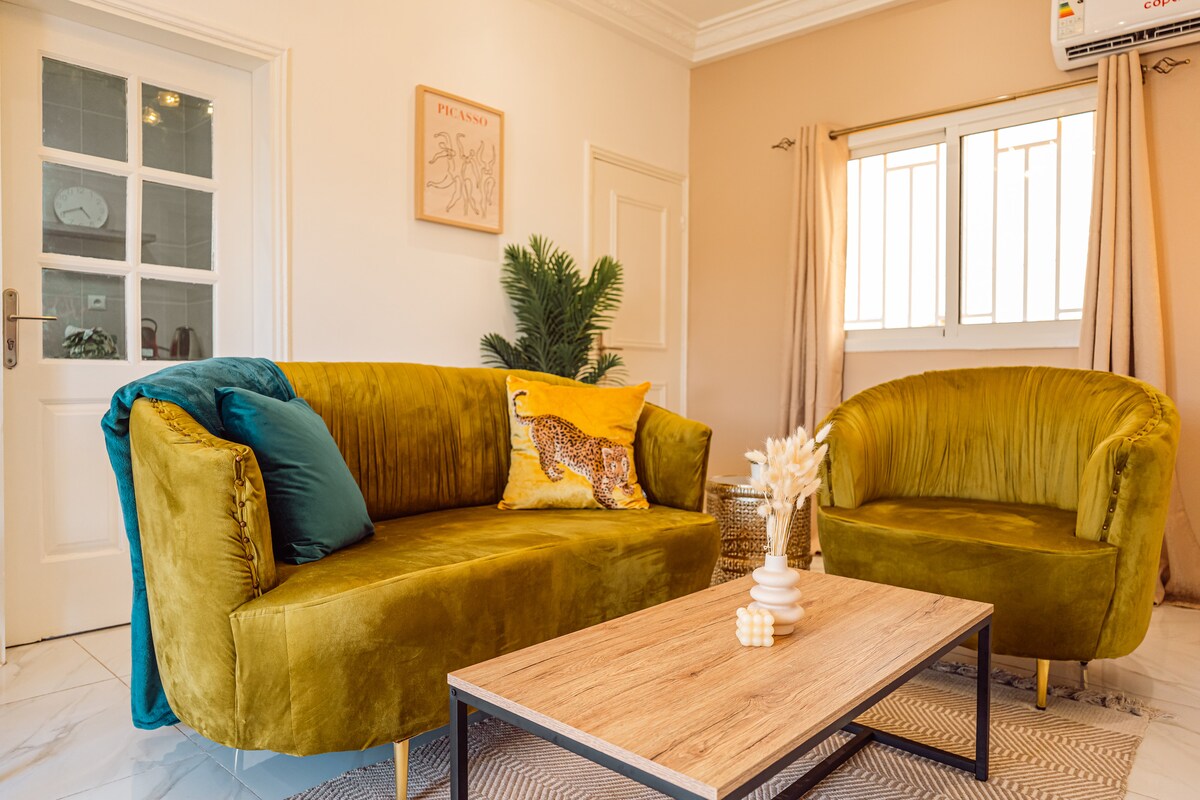 A 10 min de la plage, vous trouverez vos quartiers dans ce studio niché entre les arbres et les plantes. Situé a quelques mètres de la résidence du président de la république, c'est une résidence sécurisée et à proximité de super-marchés, patisseries etc. Refuge pour les oiseaux, vous aurez l'occasion de rencontrer des perroquets et toute sortes d'oiseaux. A l'écart des autres appartements de la résidence, ce studio est bordé par les plantes de toutes part.