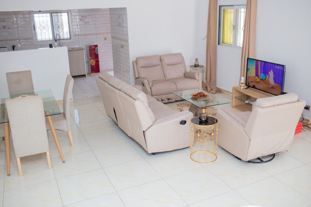 Ce logement cosy et chaleureux se distingue par son ambiance accueillante et son emplacement stratégique, situé à 4 minutes du centre commercial MBOLO . Le salon, confortable et bien équipé, offre un espace idéal pour se détendre. La cuisine ouverte invite au partage. Situé près du centre-ville, il permet un accès rapide sans embouteillages, tout en étant dans un quartier calme . Parfait pour un séjour inoubliable, alliant confort et praticité.