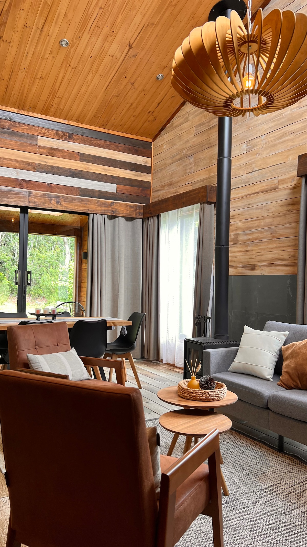 Vive la serenidad de Panguipulli desde una acogedora cabaña con vista panorámica al Lago. Sumérgete en el silencio del bosque y los mágicos atardeceres del sur. Nuestra tinaja climatizada y autónoma completa la experiencia perfecta: en temporada baja tiene costo adicional y en temporada alta te regalamos 3 días para disfrutar un descanso único, rodeado de naturaleza y calma.