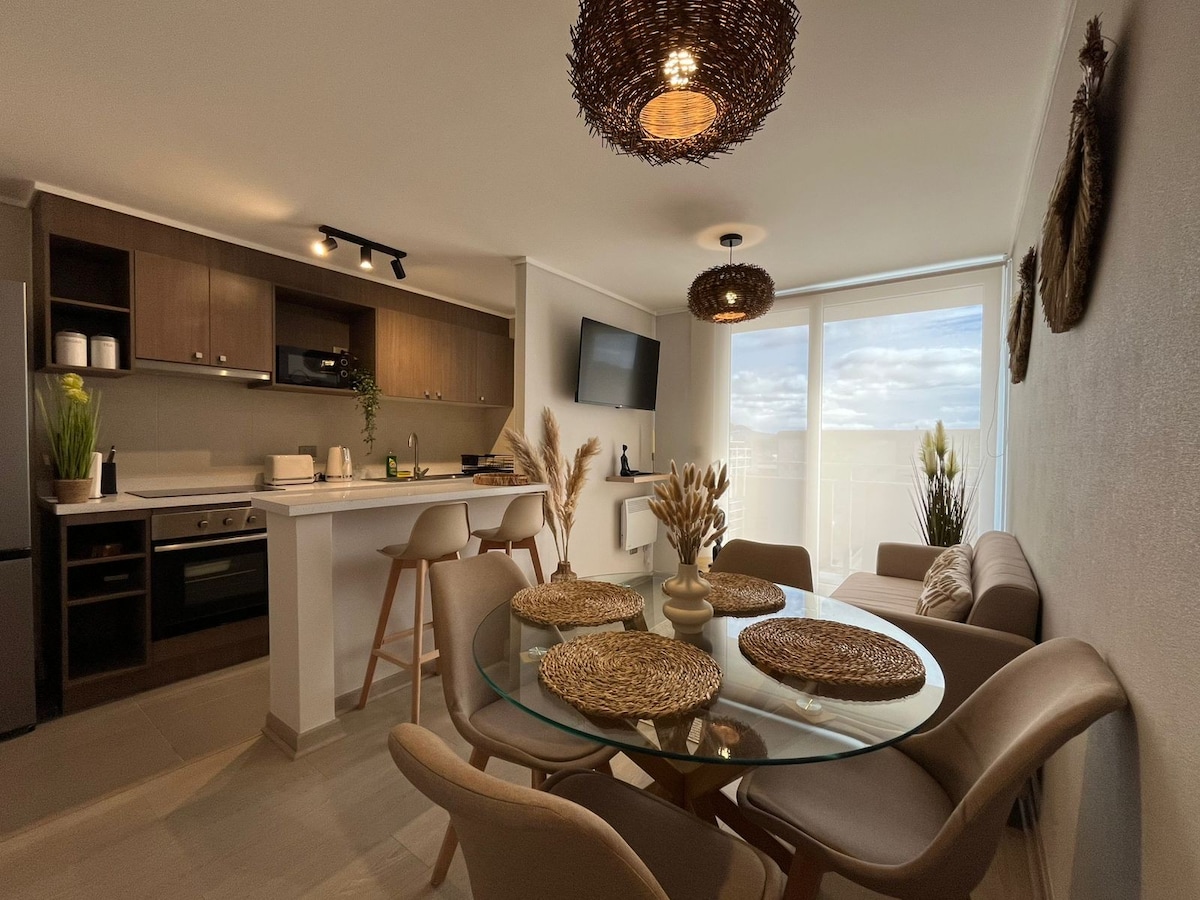 Nuevo y acogedor estudio en la mejor ubicación de Pucón, a pasos de playa grande, centro, y aislado del ruido de la calle principal. Cuenta con cama de 2 plazas, un futón de 2 plazas, cocina full equipada, baño completo, WiFi, TV 49" con Netflix, Disney+ y más, terraza, calefacción, parrilla, cafeteras, 2 bicicletas de uso ilimitado, entre otros. Estacionamiento público frente al acceso al edificio disponible. Incluye ropa de cama, toallas, e insumos básicos de baño y cocina para cada estadía.