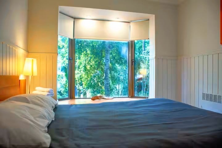 Desconéctate en plena naturaleza y disfruta la tranquilidad del campo, rodeado de bosque nativo y lejos del ruido. A solo: • 10 minutos en auto del Lago Calafquén y Termas Geométricas Incluye toallas, WiFi Starlink de alta velocidad 📍 Ruta Termal y Naturaleza: • Termas: Vergara (4 km), Geométricas (7 km), Cofré (6 km), El Rincón (10 km). • Paseos: Saltos Pimentón/El Buey (5 km), Playa (9 km) y Parque Nacional Villarrica (14 km). Más info: #altodelbosquelodge