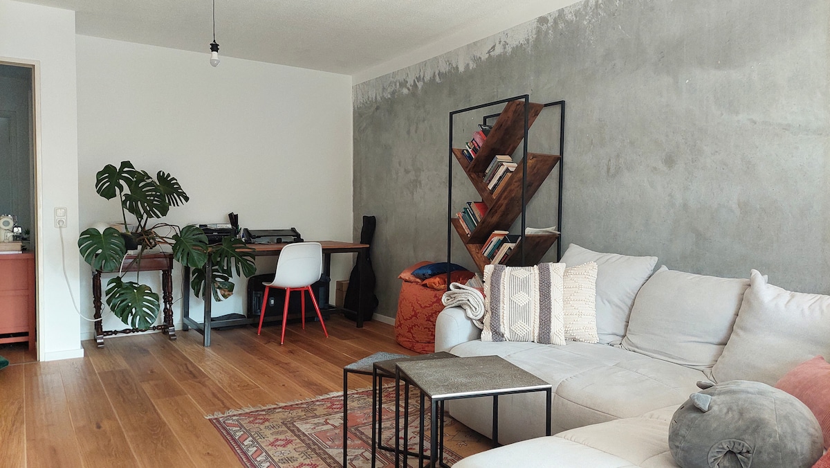 Warm & quiet 40sqm apartment with private entrance in a Bauhaus-style townhouse. 🌡️ Underfloor heating fills the space with gentle warmth. Soft daylight from the 4m sliding window sets a calm mood. Step outside to the cozy Terrace for your first morning coffee, feeling the crisp air and peaceful garden around you. Perfect for slow mornings & cozy evenings. ⚡ Very fast WiFi · 👥 2 guests · 🍳 fully equipt Kitchen · 🧺 Washing Machine