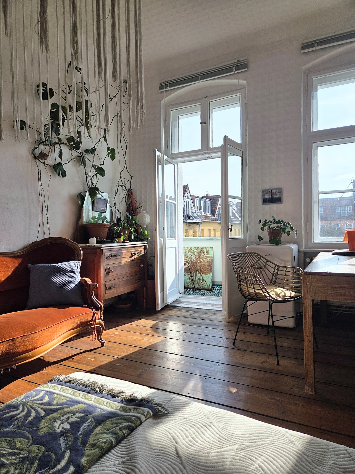 Sit back and relax in the loggia - in this quiet, stylish accommodation. Be sure to check out the unique experiences listed in my profile – forge your own silver ring or enjoy a calm sound healing session for ultimate relaxation. Just send me a message to book your personal session and create your unforgettable Berlin experience!