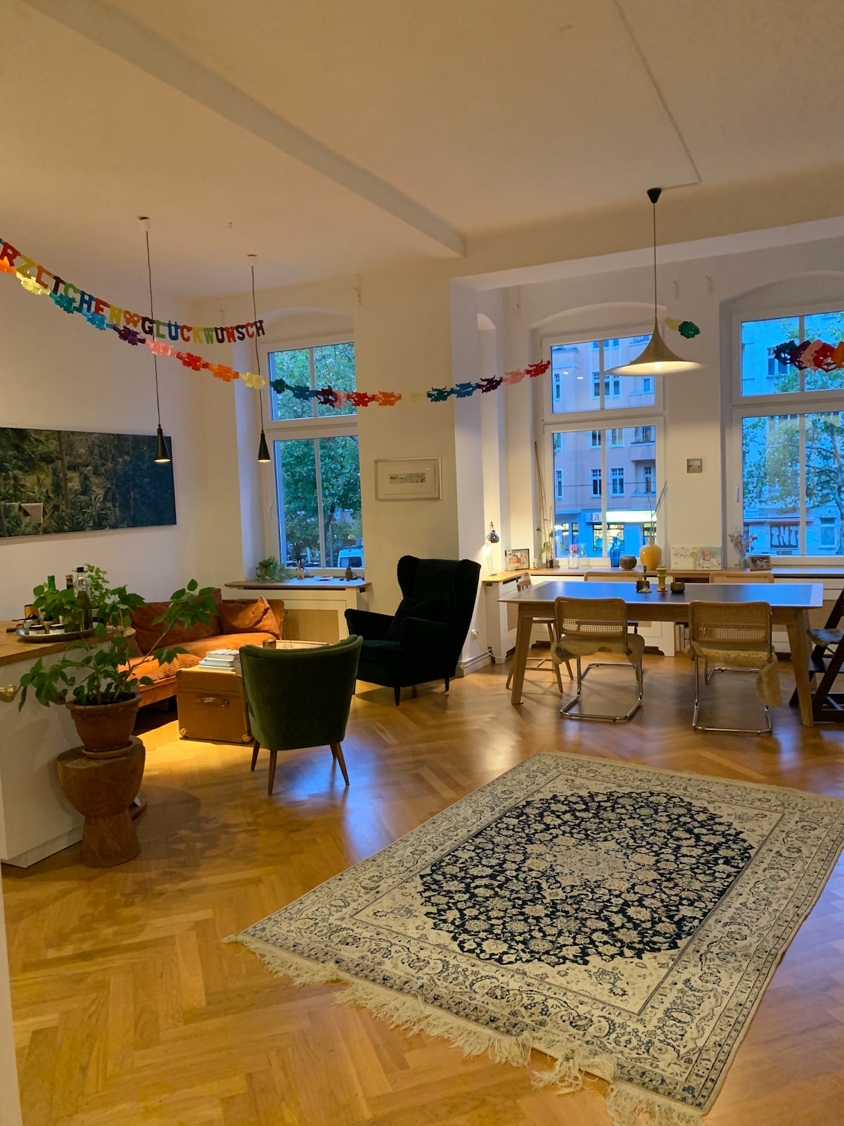 Bright and big apartment with a direct view to the bay of Rummelsburg. 1 bedroom with a large double bed Large living room with open kitchen and dining area All fully and exclusively equipped Bathroom with bathtub, shower cubicle and toilet, as well as a second guest toilet. Balcony with a view to the bay of Rummelsburg Lift Other rooms in the apartment are private and locked. Good access to public transport Plenty of free parking Variety of restaurants, bars and leisure activities
