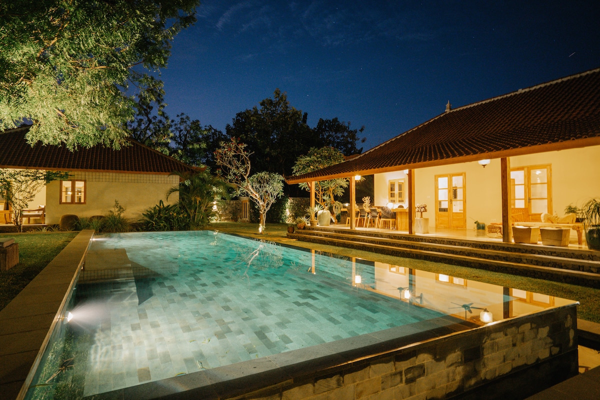 3卧室私人Joglo别墅-海滨和泳池
