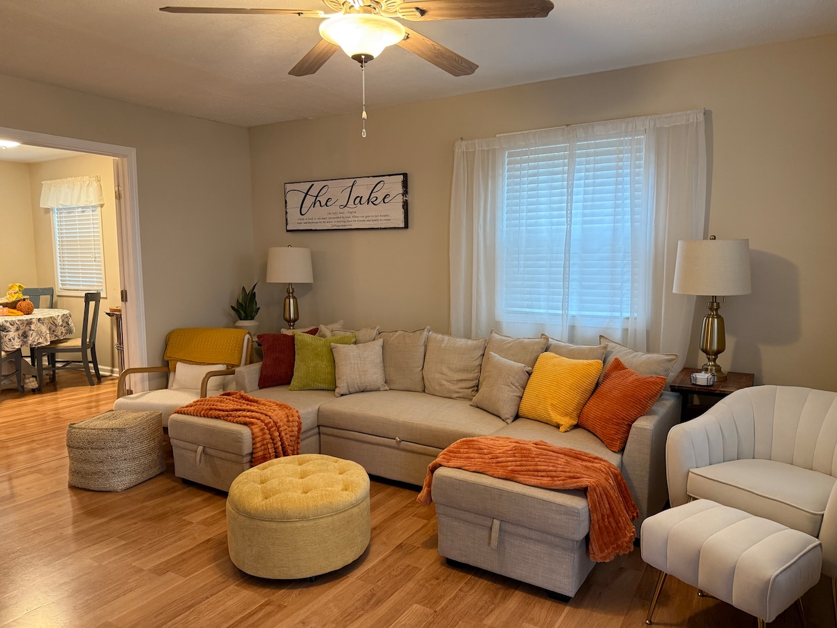Newly remodeled home just a short walk to the Lake, Bars & Restaurants! 2 bedrooms & 2.5 bathrooms with a cozy nautical design. Fully stocked kitchen and spacious living room are perfect for vacationing with family! Additional amenities included for our guests are: 3 Bikes, Yard Games, Firepit, Propane Grill & Board Games We can accommodate a MAX of 3 Cars and no street parking available. All Short-Term Rentals in the Village of Buckeye Lake are governed under Ordinances #2022-36/#2023-27
