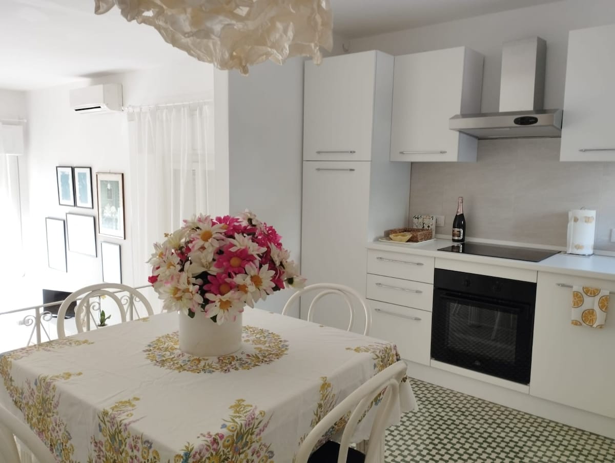 Appartamento in stile greco e marino finito di ristrutturare a luglio 2023. Arredato in maniera semplice ed elegante, il colore bianco e il legno vi faranno sentire subito in vacanza appena entrerete nell'ampio salone. Vi sembrerà di essere su un'isola della Grecia, con il controsoffitto di travi e canniccio, il letto matrimoniale di cemento così come il mobile tv ed i bagni. Una casa semplice ma di pregio dotata di tutti i comfort possibili gestibili tramite Alexa. Un appartamento magnifico!