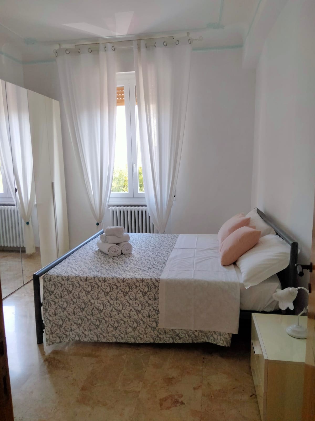 Bilocale con vista sul Santuario raggiungibile a piedi in 5 minuti.L'appartamento e' dotato di aria condizionata in entrambi i locali,internet wifi,piano di cottura a induzione, forno e microonde,lavastoviglie, TV, lavasciuga. Si trova in zonacon tutti i servizi presenti; nello stesso stabile sono presenti un supermercato e una farmacia, nel quartiere tabaccheria, bar pizzeria,pescheria, lavanderia e sportello bancario con Bancomat.Le parcheggio e' gratuito.