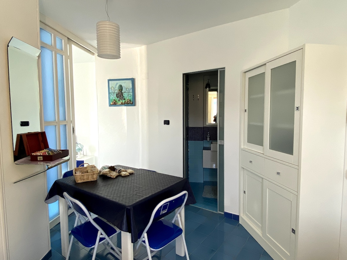 The prevailing color of this apartment is green. The recently restructured apartment is completely furnished and equipped with every comfort and has a 43 square meters terrace offering a boundless sight of sea and sky… The seventeenth century Moresque bell tower, part of the Santa Maria Maddalena’s Church rises stately close to the house. This church is not as ancient as our dwelling which was built years before. The splendid vaults of the house are evident proof.