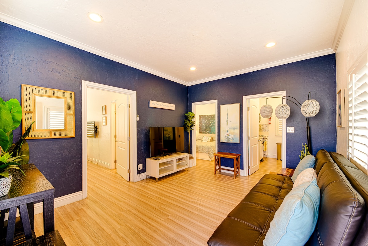 舒适的海滩豪华单元+特大号床和电动车|步行至海滩!