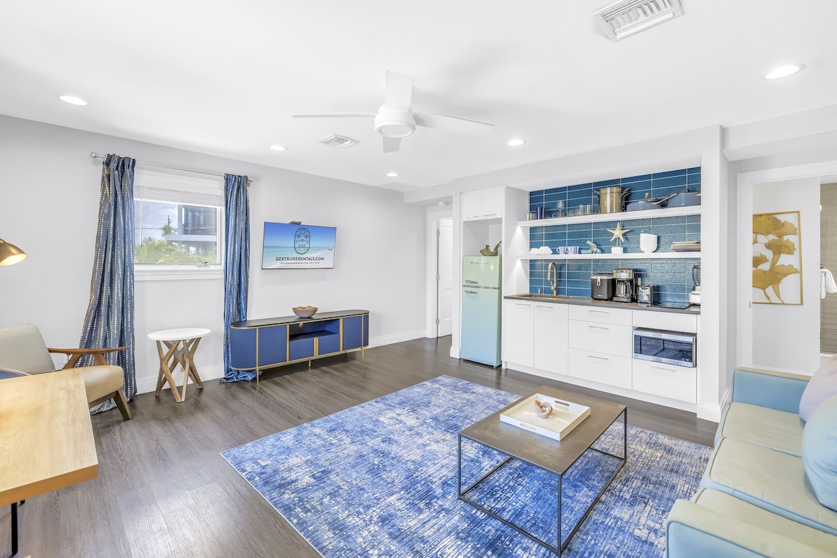 Experience pure elegance in this newly renovated studio retreat. With a private entrance, it comfortably accommodates 3 guests (2 on the bed, 1 on the couch). Enjoy dedicated parking, a full bath, plush queen bed, cozy couch, and a well-equipped kitchenette. Nestled in a tranquil locale near downtown Sarasota, this oasis offers easy access to urban delights. Siesta Beach is just 8.7 miles away, while Lido Beach beckons at 5.8 miles. Your ultimate escape begins here!