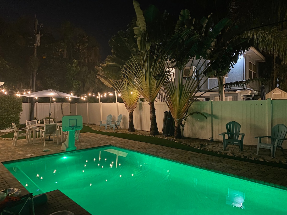 Relax with the whole family at this peaceful place to stay. Enjoy 2 master suites with 3 bedrooms and 3 bathrooms. A 5 min drive to Nokomis beach or downtown Venice, and walking distance to legacy trail, tennis courts, and playground in Nokomis park. Fast 500GB up/down internet speed around the property, Tiki bar nestled next to a heated pool and spa ( adtnl charge for spa). Fully stocked kitchen, beach-ready with cooler chairs umbrella wagon, and toys. 4 smart tvs