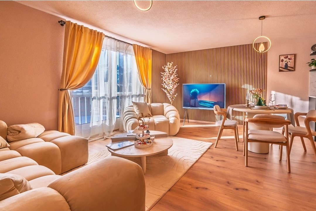 Stylish boutique apartment with a premium kitchen, cozy underfloor heating, and modern design. Enjoy a plush double bed, Smart TV with Netflix, PS5, fast Wi-Fi, and a dedicated work corner with printer. Small fitness equipment is also available. No private terrace, but guests can relax in the shared green outdoor space. A special welcome gift included. Perfect for couples, families with kids, and pet-friendly stays. Ideal for both short and long-term stays. Baby crib available on request.