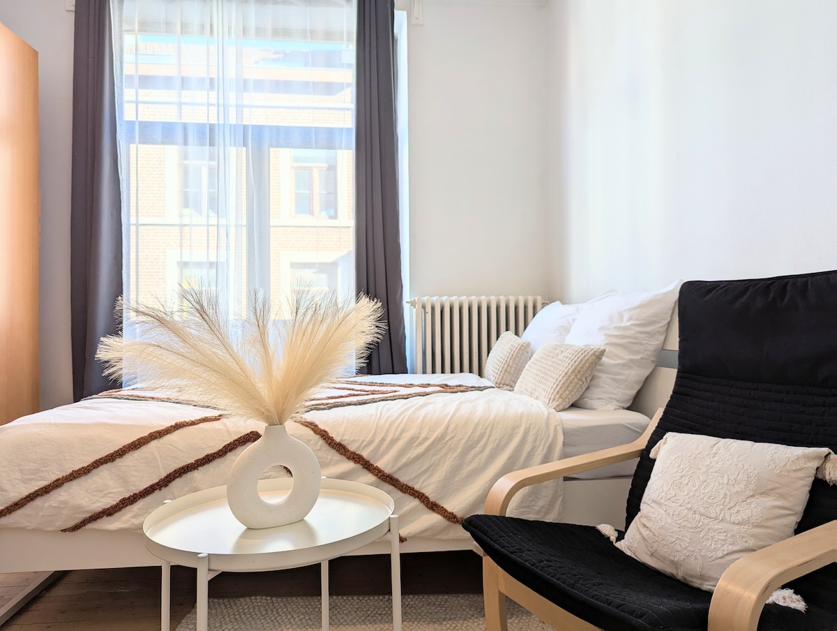 Bienvenue dans notre appartement situé en plein cœur historique de Liège. Vous serez à quelques minutes à pied de l'hypercentre et à proximité du marché de la batte, des musées ou les plus beaux moments de la ville. Idéal pour un séjour en couple, entre amis ou en famille avec ses 3 couchages et un lit pour bébé. Ce logement est situé au 2e étage et est équipé d'un beau séjour avec cuisine, d'une spacieuse salle de bain, avec baignoire et d'une chambre séparée.