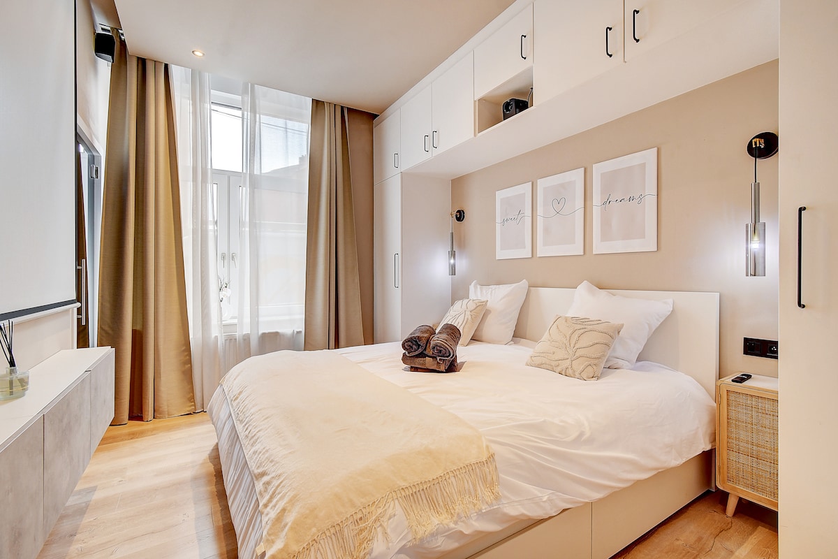 Suite Jonfosse - Charmant et luxueux appartement 2 chambres ( 2 lits doubles et un canapé convertible en lit 2personnes) situé au cœur de la ville de Liège dans une rue calme à proximité des endroits emblématiques: Place St Lambert, Cathédrale St Paul, l’Opéra Royale, Forum , restaurants, boutiques . Rénové et décoré avec soin, il est parfait pour un séjour en couple, en famille, ou entre amis... Il convient également pour télé-travailler. Draps et serviettes fournis.