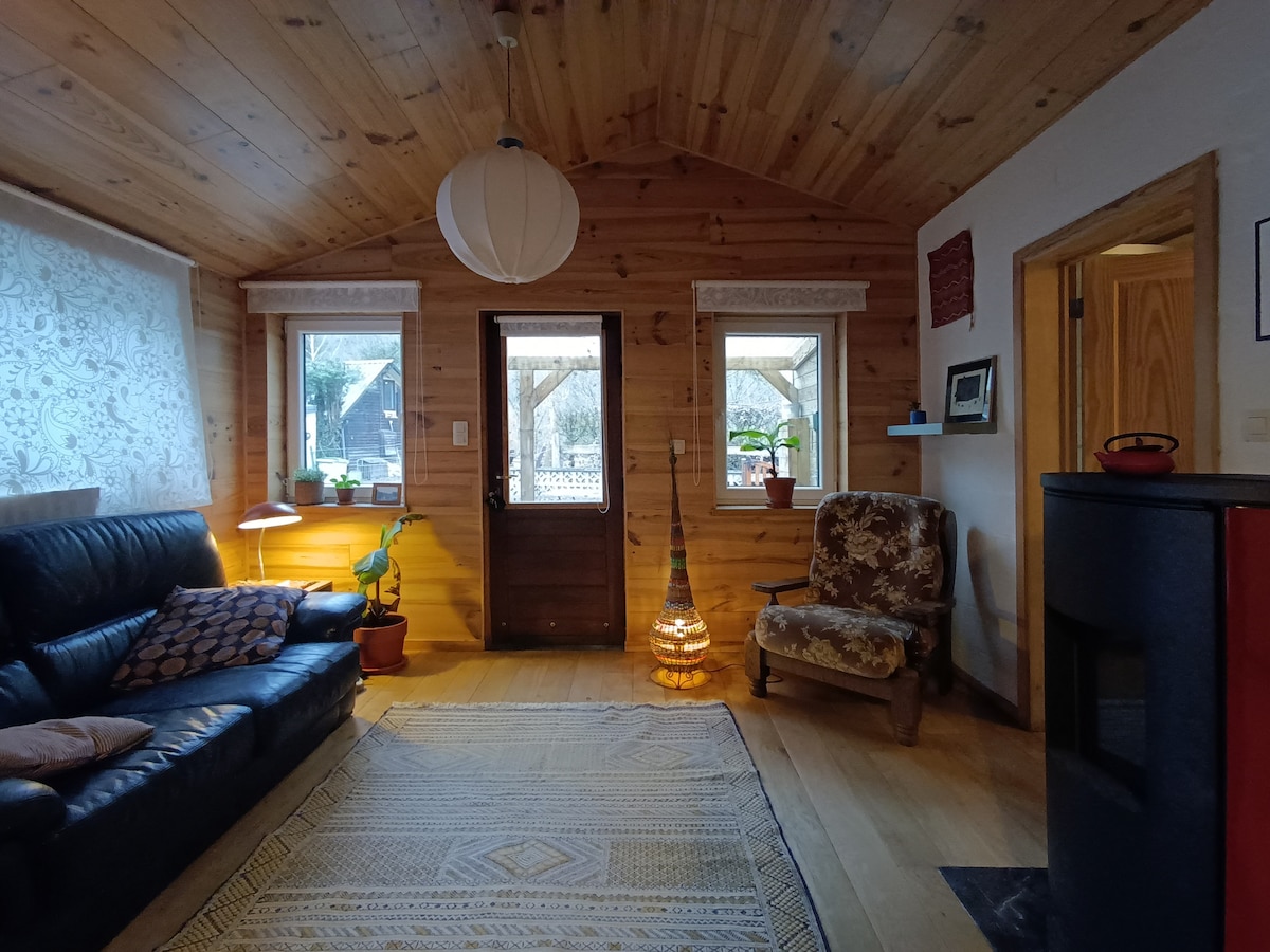 Chalet "La Jardinière" - Très joli petit nid d'amour pour deux personnes, près de la rivière, dans un site classé exceptionnel : "Grand Site Paysager de la Boucle de l'Ourthe" ! Balades de charme sur le Ravel ... Venez vous épanouir dans une nature luxuriante, un calme bucolique exceptionnel, loin de toute circulation ! Écoutez les petits oiseaux chanter, le doux ruissellement de la rivière, et les canards qui se pavanent. :) Venez vous détendre dans ce petit coin de paradis pour les amoureux !