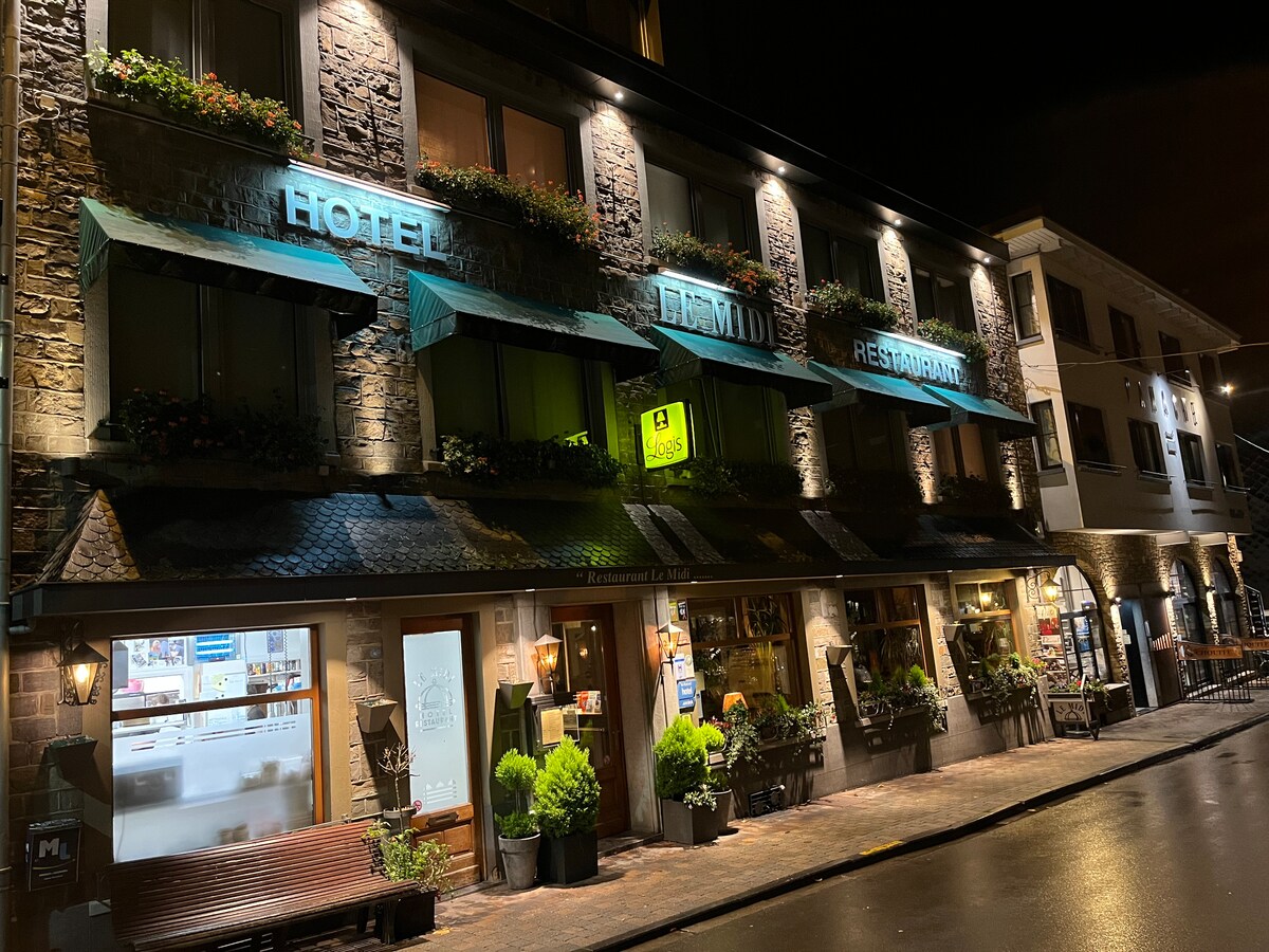 Stay in the heart of Durbuy 🌿 Hôtel La Calèche welcomes you to its modern, comfortable rooms with TV, free Wi-Fi, coffee machine and a tablet to control ambient lighting. Enjoy a delicious breakfast every morning and local cuisine in our restaurant. Warm and welcoming staff, private parking on request, and the perfect location to explore Durbuy’s charm.