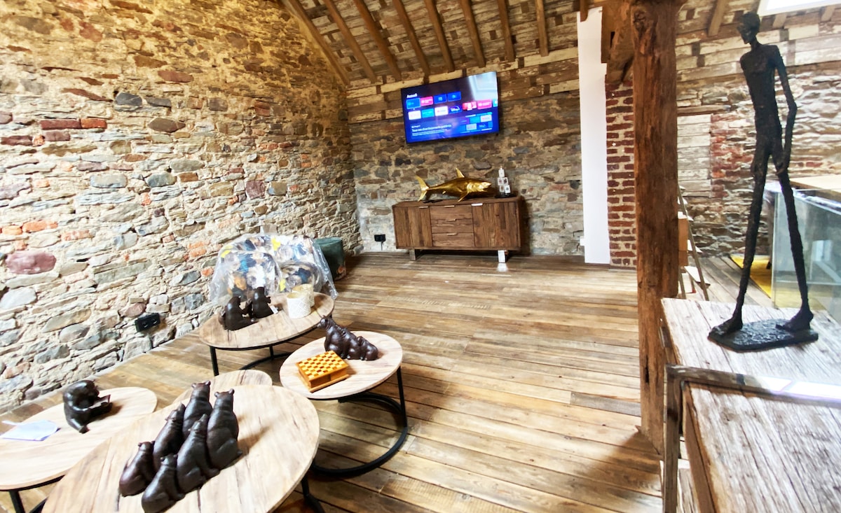 Située au premier étage de la grange, cette chambre d’environ 20 m² allie confort et raffinement. Elle dispose d’un grand lit double, d’une salle de bain avec douche italienne haut de gamme équipée de la technologie PowderRain, pour une pluie de microgouttelettes douce, silencieuse et relaxante. Vous y trouverez également une TV à écran plat, le wifi, un mini-bar, un coffre-fort, une machine Nespresso, une enceinte Marshall pour une ambiance sonore de qualité, ainsi qu’un système hvac.