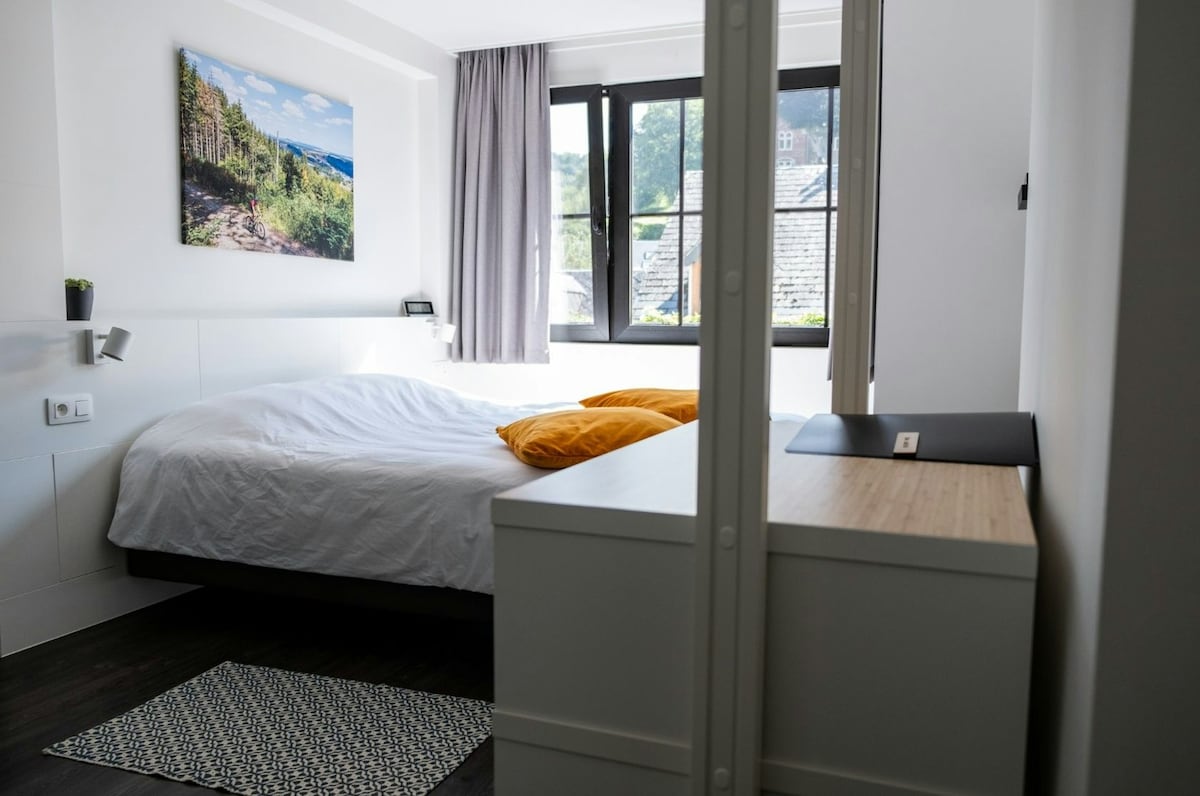 Welcome to Chez Mémé, in the heart of La Roche-En-Ardenne<br><br>Ideally located 300 meters from the famous feudal castle of La Roche-En-Ardenne, Chez Mémé offers a warm and comfortable stay. The Green Room, with direct access to a shared terrace, is perfect for a relaxing moment close to nature, whether you're traveling as a couple, with friends, or solo.<br><br>Green Room: Comfort and Outdoor Space<br>This independent double room is designed for your comfort and peace of mind. It includes:<br>
