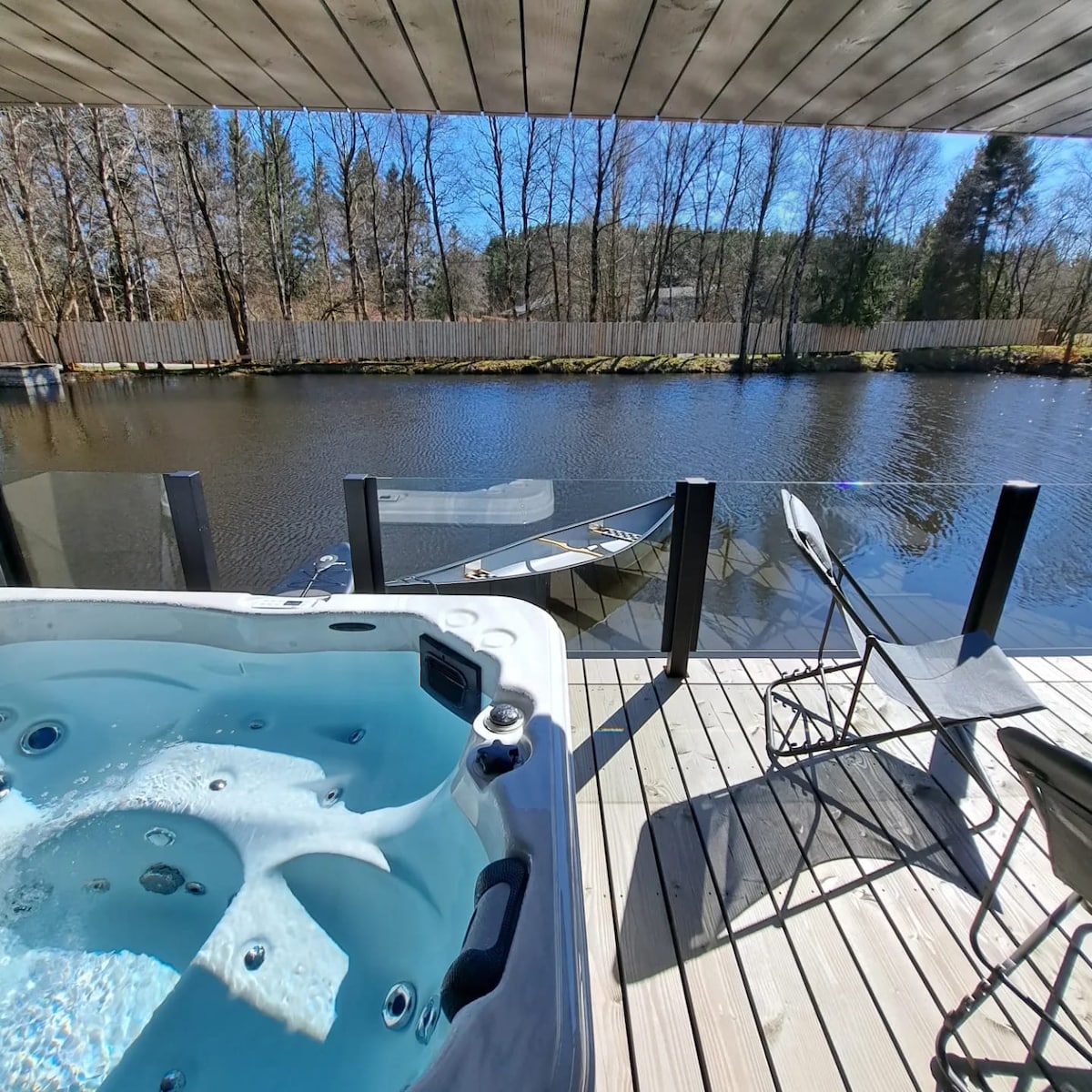 Un chalet cosy et luxueux avec jacuzzi se trouvant au bord d'un joli petit lac privé à Sourbrodt avec un canoë et un paddel sur votre ponton, en plein cœur des Ardennes belges, et pouvant accueillir 2 personnes. Un intérieur en bois chaleureux avec une cheminée à gaz, une table de massage et à l'étage une salle de cinéma. La chambre à coucher avec salle de bain dispose d'une vue magnifique sur le lac. Il y a aussi un sauna au bord du lac. Le sauna est à partager avec l'autre chalet.
