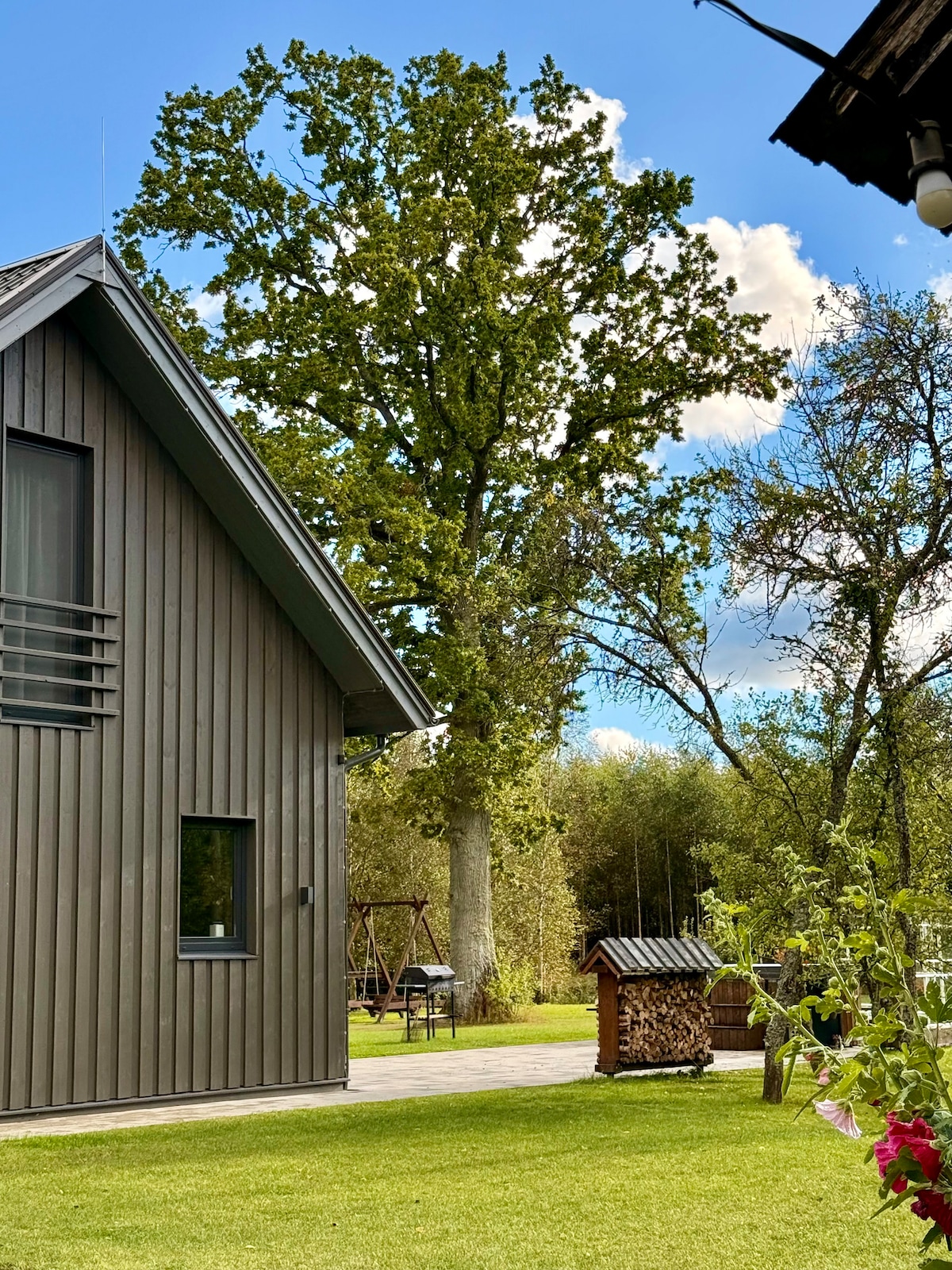 The residence's dazzling interior will give you an "authentic" experience in the rural area, 6km from the sea. TILIA Eco Spa & Residence provides a spectacular view of nature and offers the perfect location in a natural, comfortable, modern space in the Liepaja region. Functional premises, pond, and animal-friendly stay (no charge for the four-legged guests). A sauna and outdoor hot tub (additional charges apply)—all for the comfort of our guests!