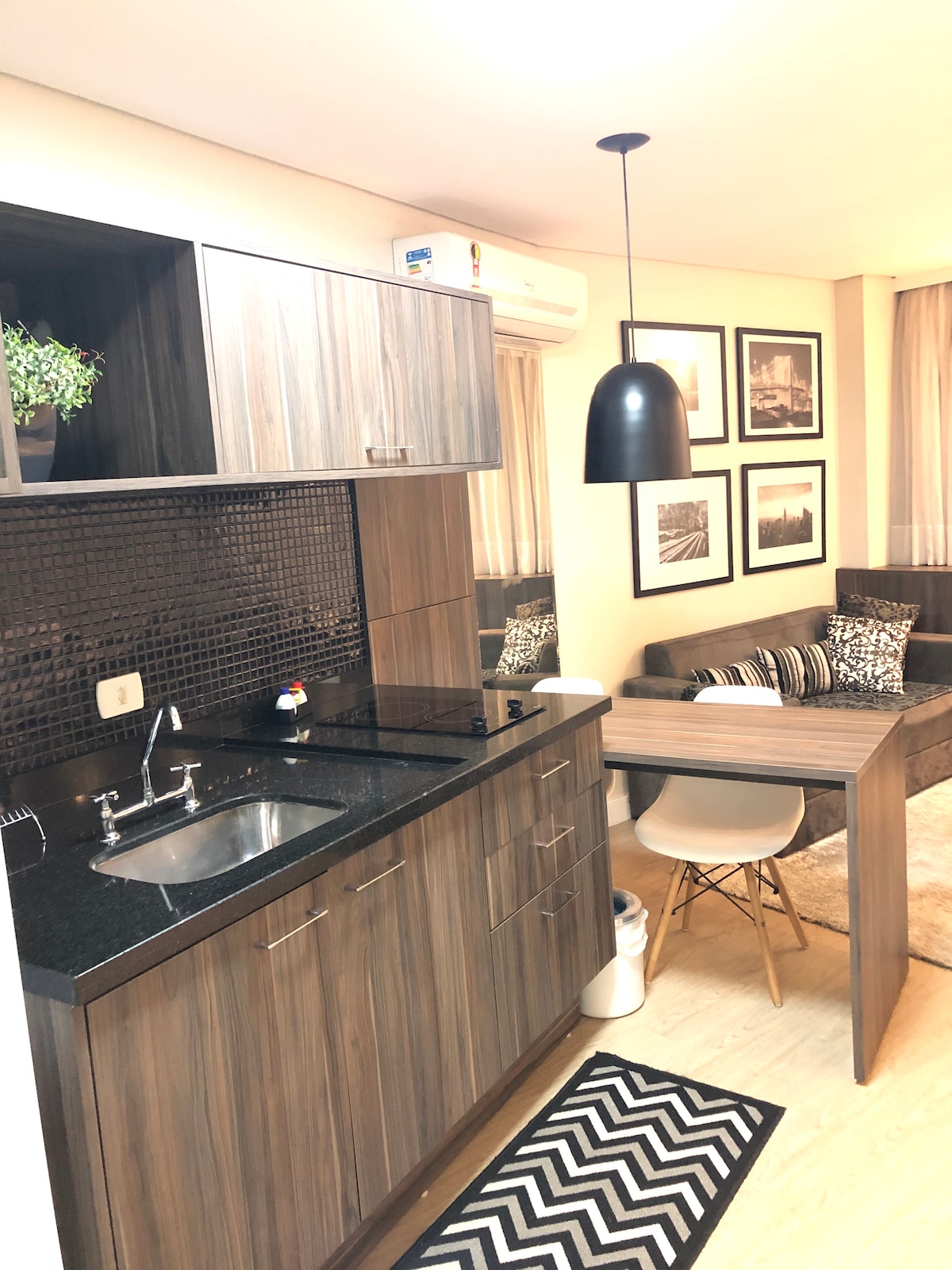 Studio muito bem decorado e super equipado em andar alto. Ideal para profissionais que vem a Curitiba a negócios e casais que apreciam bom gosto, uma bela vista da cidade e a praticidade de se estar perto de tudo. A garagem deverá ser reservada e pagamento de diária 25,00.