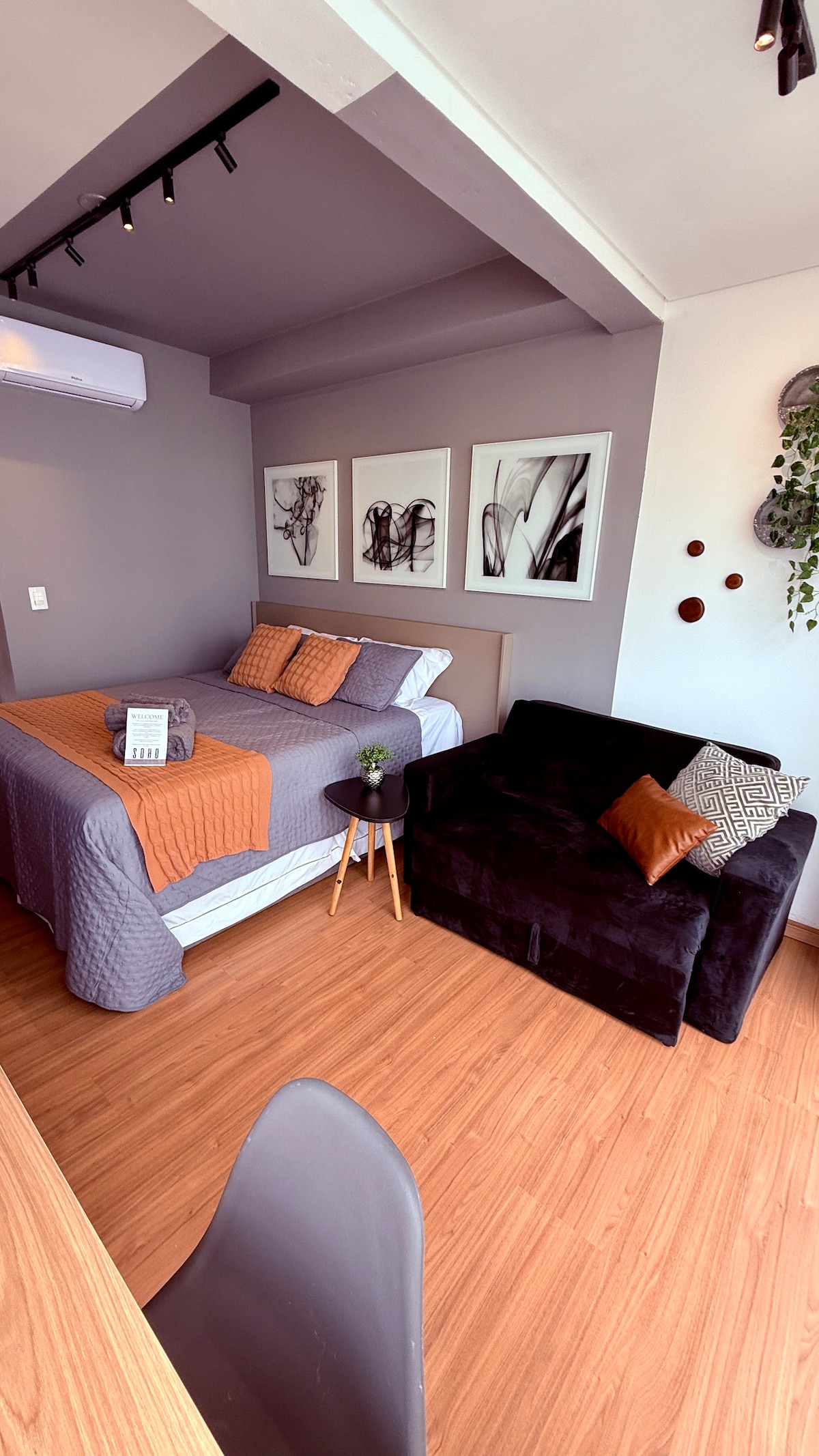 位于市中心的全新现代精致单间公寓,配备空调