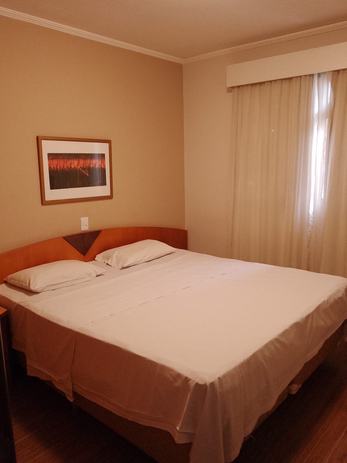 Pode optar por 2 CAMAS de solteiro OU 1 CAMA CASAL Queen. Verificar disponibilidade de berço portatil na data solicitada, caso precise. AR CONDICIONADO, TV A CABO. VAGA DE GARAGEM COM MANOBRISTA, CAFÉ DA MANHÃ PAGO À PARTE caso queira .Fica no bairro nobre Batel, à uma quadra do Hard Rock Café, Shoppings Crystal e Curitiba, e da rua Vicente Machado que possui os bares mais charmosos da cidade. Você vai amar meu espaço. Perto de restaurantes, mercado e transporte público.