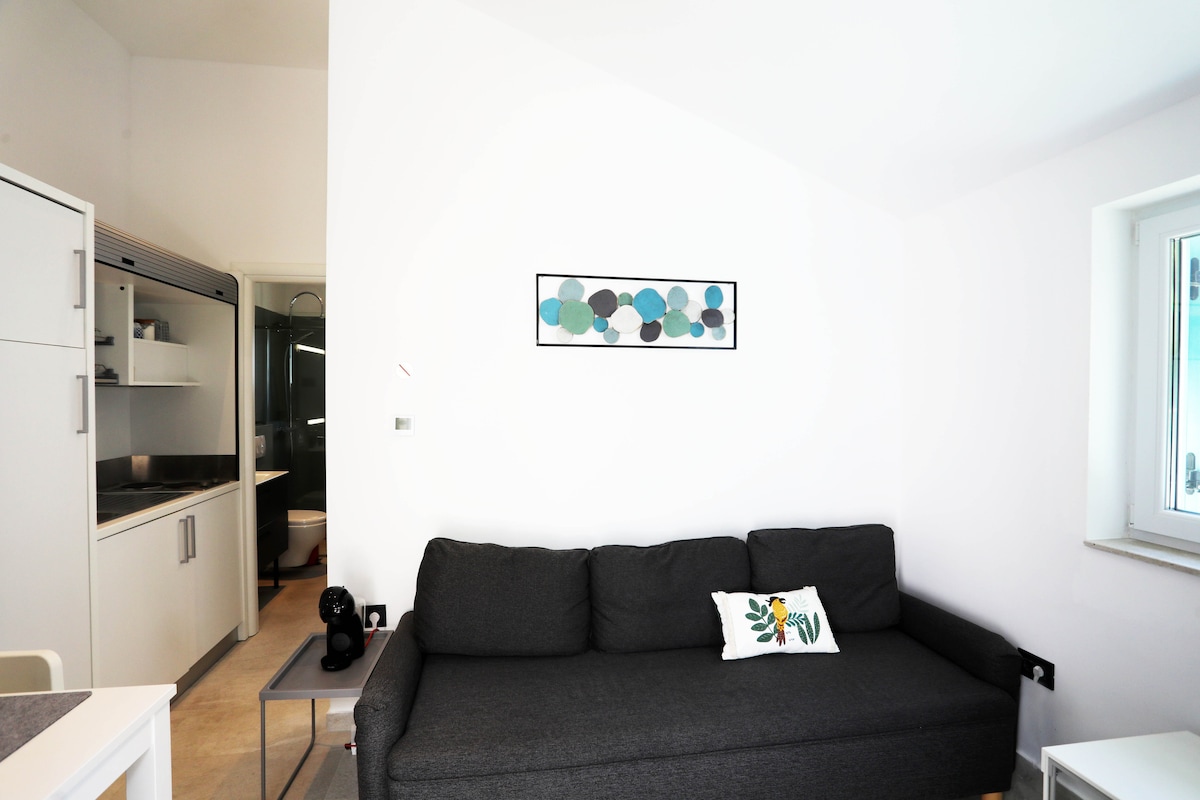 Modernly furnished apartment with sleeping gallery. It's completely renovated inside of an old Italian military building. Situated in Lovran, a charming small town on the Adriatic coast. Town of Opatija is 10 minutes drive away, and city of Rijeka 30 minutes. Free of charge parking space around the building. Big choice of restaurants and beaches nearby. Everything needed for a pleasant stay is just a few steps away, including grocery store, local caffe etc.