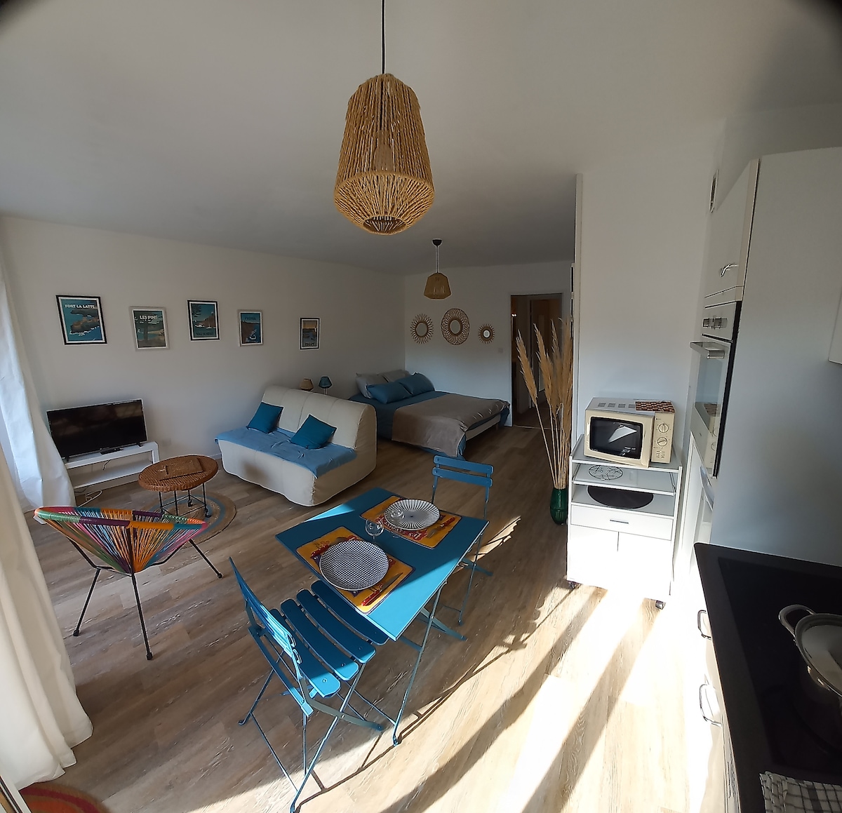 Nous louons notre studio de 23 m² perché au dernier étage des "Rochers": le seul immeuble castin aux pieds dans l’eau ! Situé en plein cœur des Mielles, le centre commerçant, vous pourrez y accéder par la route menant au port ou directement par la Grande plage, et profiter, à pieds, de presque tout ce qu’offre notre belle station balnéaire. ( 7 plages, nombreux restaurants, boutiques et marchés, port de plaisance, parcours aventure, golf, pêche, équitation, GR 34, etc...)