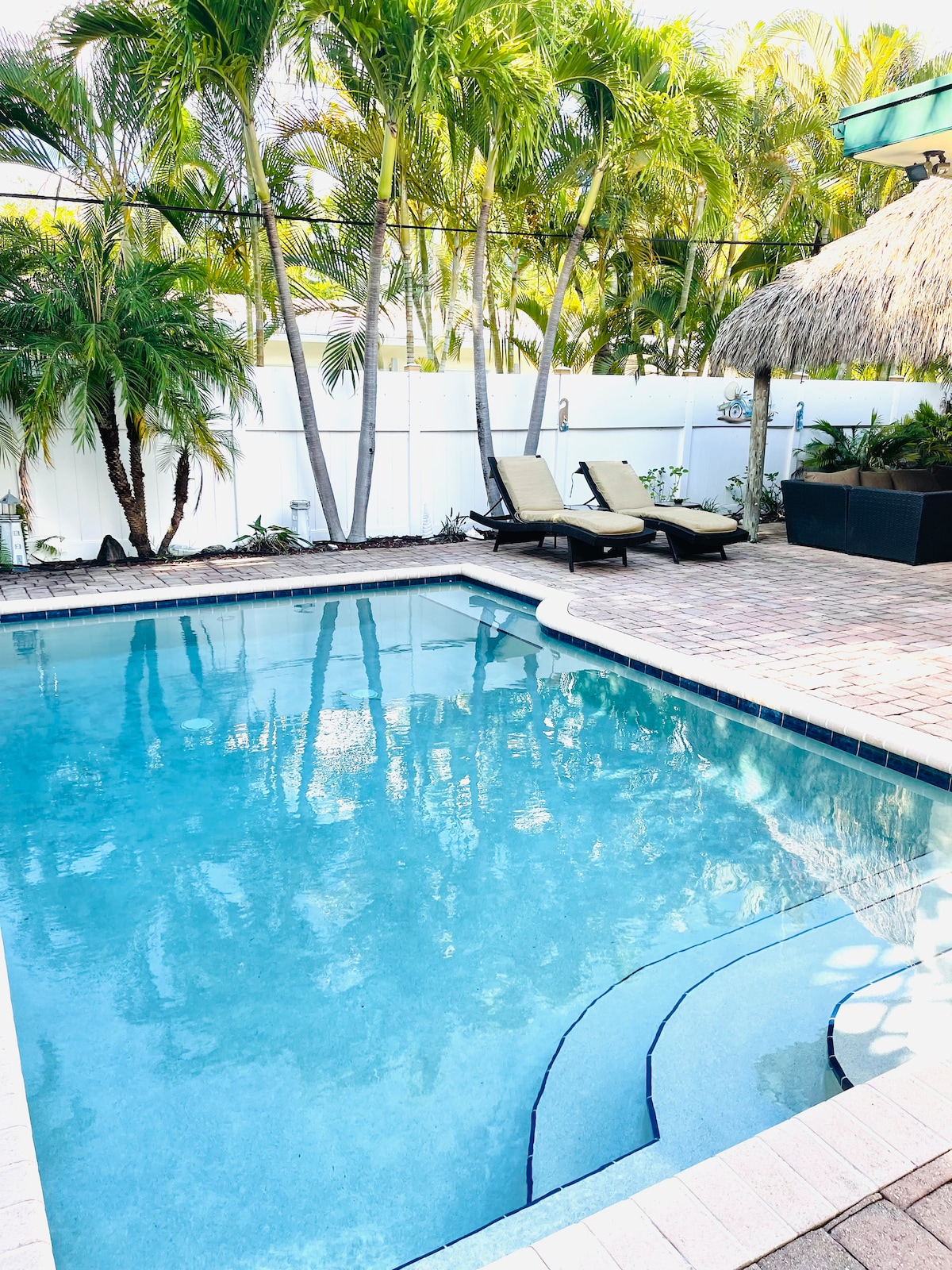 Sunny Oasis is a 1950s Florida single-family vacation home in upscale Lighthouse Point near Fort Lauderdale. Family-friendly 3BR/2BA home with huge private fenced backyard, heated pool, spa, tiki hut, BBQ, outdoor dining and lounge seating. Inside: fully stocked kitchen, fast WiFi, workspace, large dining table, smart TVs, washer/dryer and retro bikes. Short drive to Pompano and Deerfield beaches, restaurants, bars and marinas. Ideal for families, snowbirds and work stays in South Florida. too!