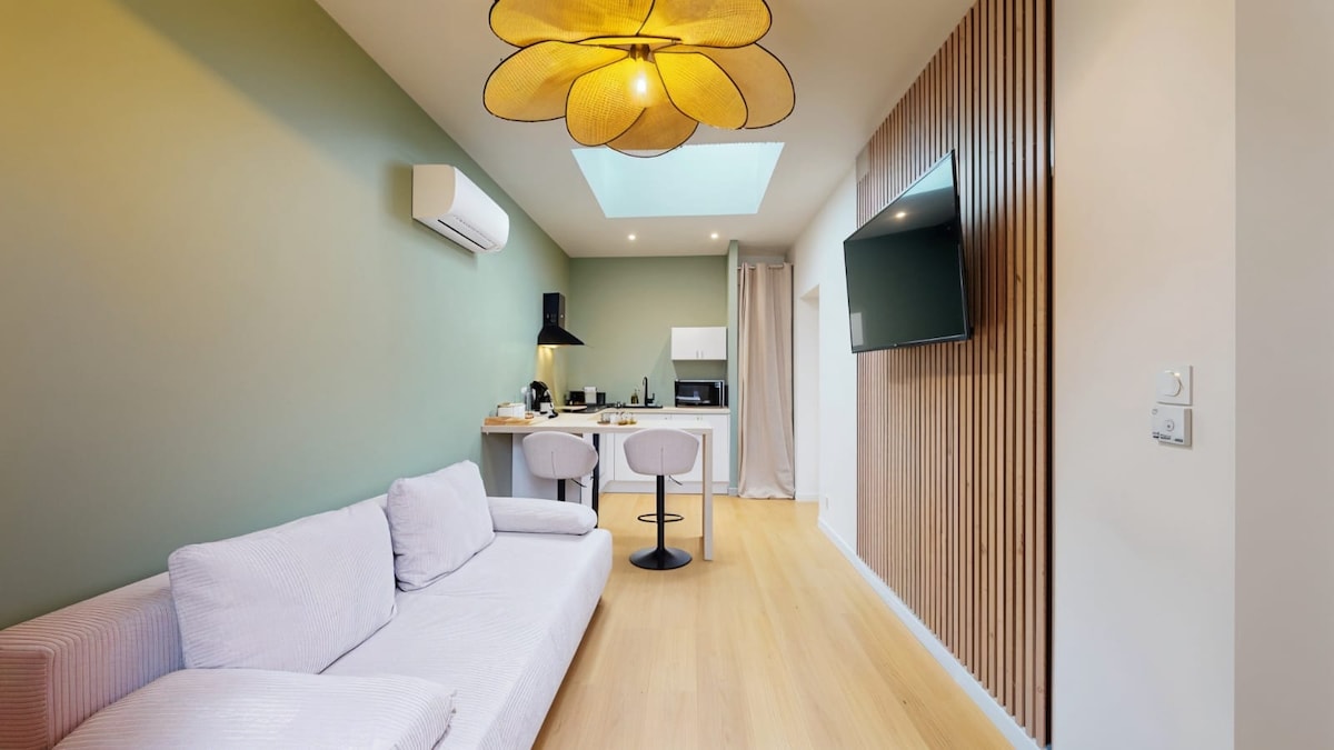 Bienvenue au coeur des vignobles de l’Entre Deux Mers ! Logement neuf climatisé. Couple international, on vous accueille en français, anglais, portugais ! Idéalement situé : rocade sortie 24, Tramway de Bordeaux à 10 min, Saint Émilion à 35min, Arcachon 45min, pistes cyclables et balades au coeur des vignes à pieds ! Relaxation et détente assurées dans un espace bien-être dédié, pour les amateurs de massages.
