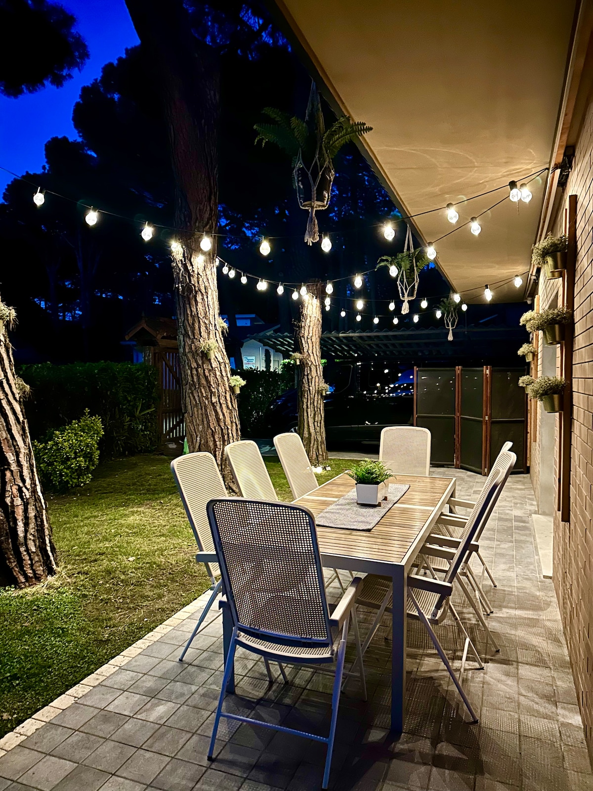 The Villa "Pineta House" is situated 5 minutes from the centre of the quiet hamlet "Pineta" of Lignano Sabbiadoro. One of the biggest advantages is the closeness to the sea and the Thermal Park, through a path in front of the house you will get there in only 5/7 minutes on foot (500 metres). The villa has private covered and uncovered parking, a garden, a barbecue, a hammock, 2 sun loungers and a patio with a gazebo and dining table.
