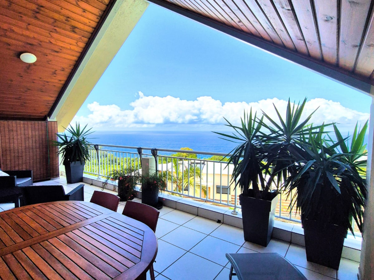 Studio cosy ⭐️⭐️⭐️ à la Petite Île : vue imprenable, piscine sur le toit et plage à 10 min !🌊🏖️ Vous rêvez d'un coin de paradis au cœur du sud de l'île ? Ce studio tout équipé, situé à la Petite Île, vous offre le meilleur des deux mondes : le calme d'un village et la proximité du Sud Situé à l'étage de notre Villa en fond d'impasse sans vis à vis avec terrasse vue mer 🌴 Ce que vous allez adorer : * La piscine en rooftop * Plage de Grand Anse à 10 min * La nature et le calme * Le studio équipé
