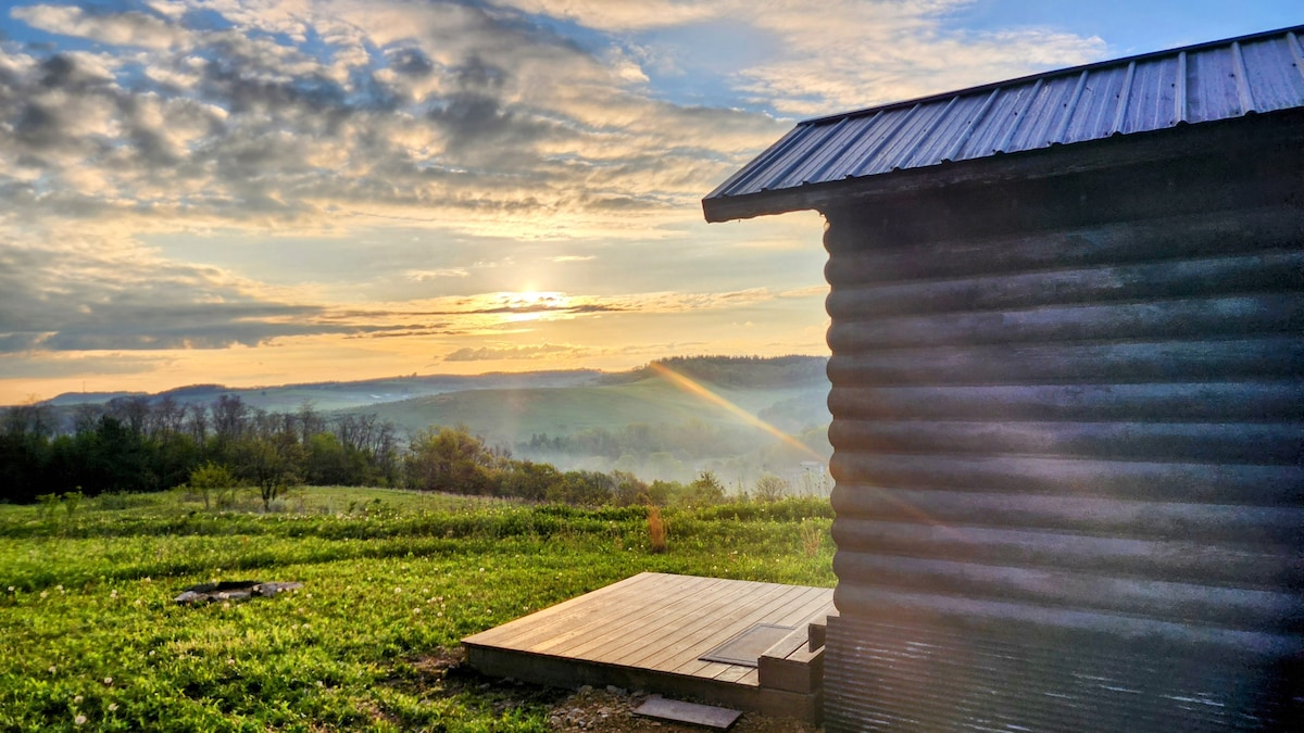 Escape to this cozy 700 sq ft rustic cabin on 26 private wooded acres in Pennsylvania's Laurel Highlands—your peaceful nature retreat! Arrive via a serene 1/4-mile private gravel road. Unwind on the porch swing or hammock watching wildlife. Important: Driveway is dirt/gravel with small hill—drive slowly. Winter (Dec–Mar): AWD or 4x4 required. No TV/WiFi for true relaxation. Just 2 miles from Quemahoning Reservoir for fishing, kayaking, trails. Ideal for couples craving quiet reconnection.