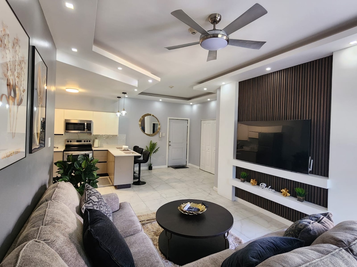 Step into a freshly renovated designer apartment where modern style meets smart technology. Featuring sleek black-and-gray interiors, vibrant LED accents, and smart-home functionalities, this very centrally located retreat puts you minutes from New Kingston, Half-Way Tree, dining, shopping, and nightlife. Perfect for business, leisure, or couples seeking comfort with a bold edge.