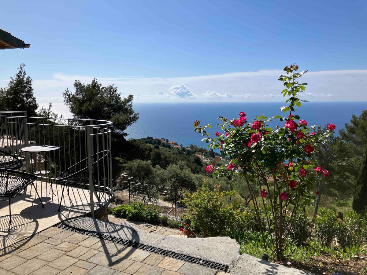 On the hill over the small village of Cipressa, at 2 miles from the beaches of S. Lorenzo and S. Stefano and from the coastal cycle route, it is an apartment at street level of a cottage in the wood with a unique sea view. Ideal for those seeking rest and walk through the paths of the ligurian hills facing the sea.