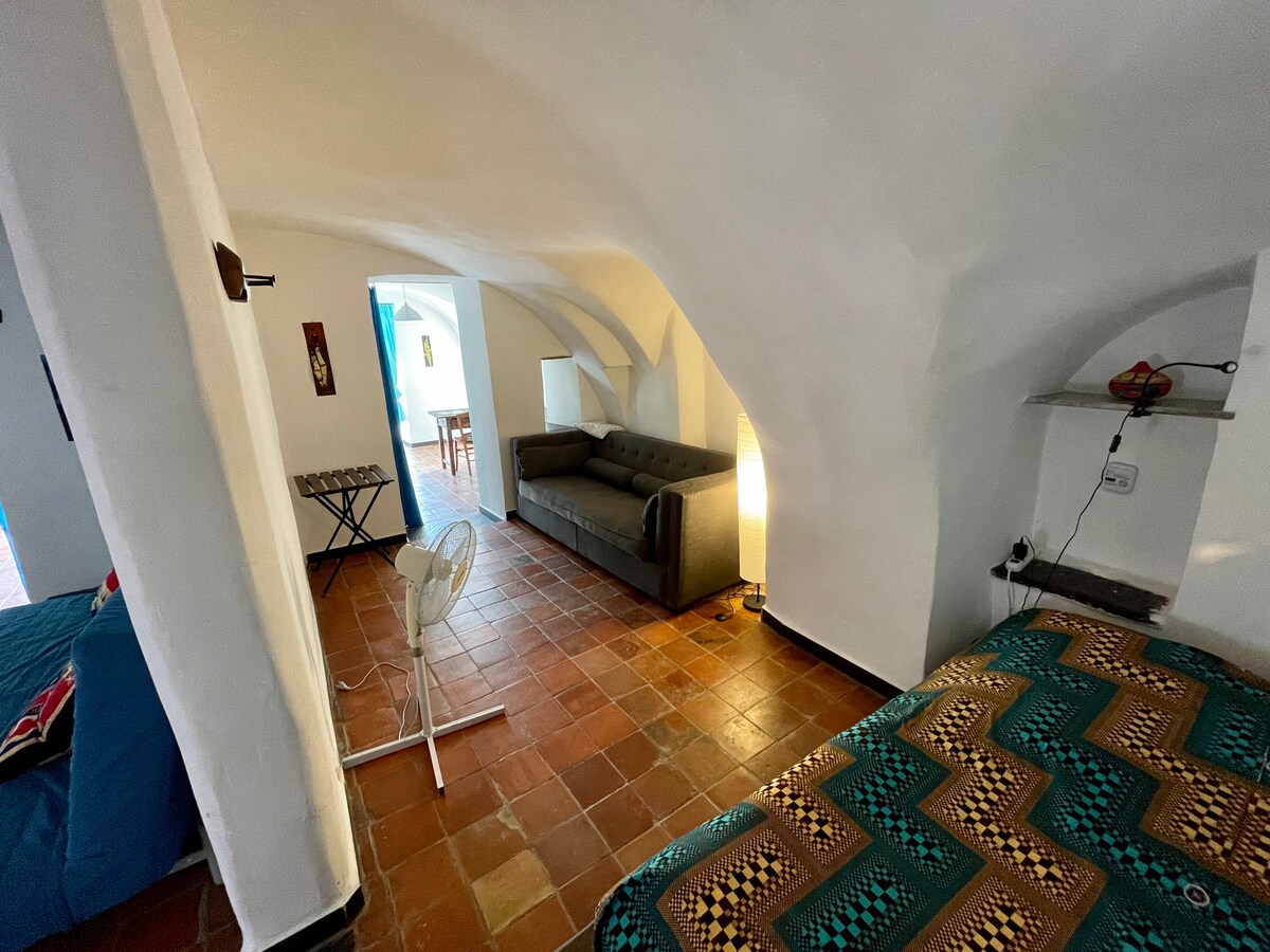 CODICE CITRA 011024-LT-0007 ... A wide, airy, sunny, high ceiling studio at exactly the heart of the village of Riomaggiore, ideally situated for visiting the Cinque Terre. The railway station, the boats, the shuttles, the paths at a walking distance of few meters. All kinds of shops at the same distance.The studio has been renovated in 2016, keeping when possible, the original features (1600); it is well soundproofed and air-conditioned and equipped with all comforts, with a large bathroom
