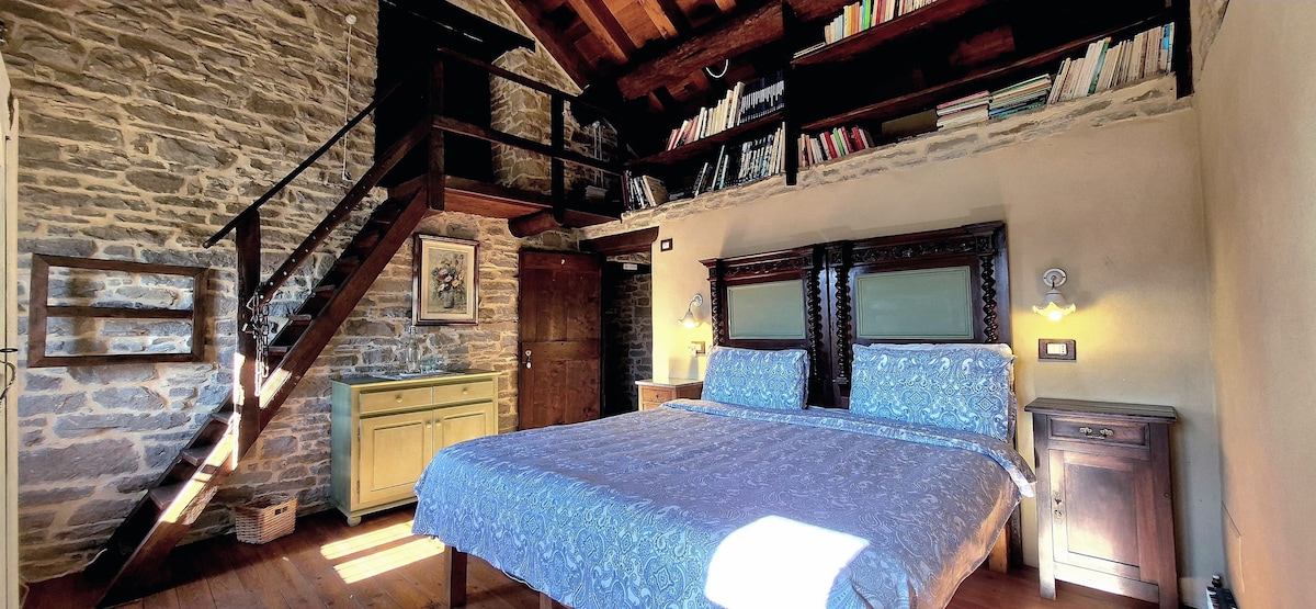 Ca’ d’Alfieri est une grande maison en pierre et poutres, nichée dans un calme absolu, entourée de forêts. Sans bruits humains, la vue est splendide et les nuits étoilées. Nous proposons un petit-déjeuner maison et un dîner local, zéro kilomètre, avec un menu fixe. Ici, on recharge les batteries : c’est l’antithèse du tourisme de masse. Pas de télévision, pas de clim, juste la nature et le bien-être.
