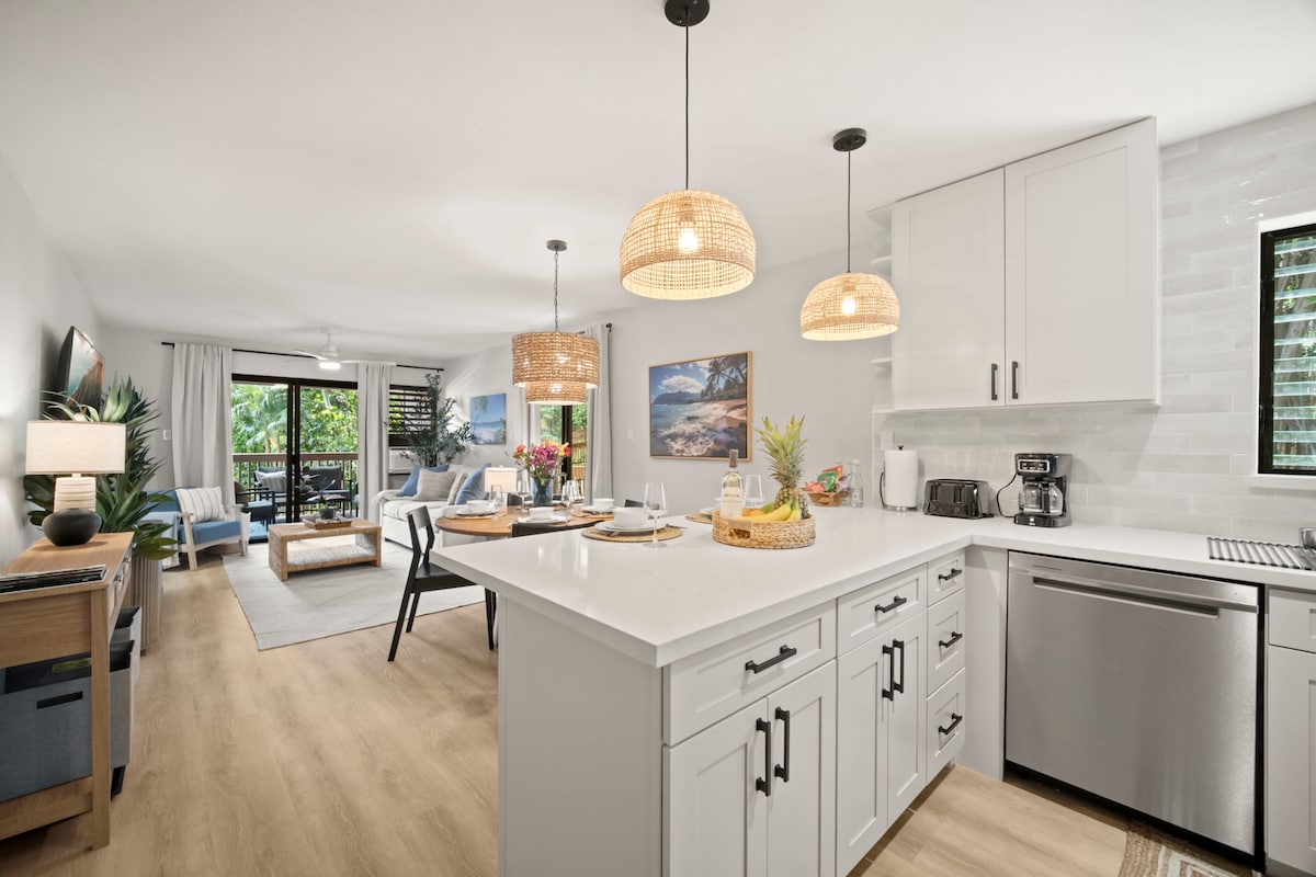 Kick back and relax in this stylish space. We just wrapped up a full remodel on this unit so you'll be one of the first to step into a unit with brand new EVERYTHING. This unit is just steps to World Renowned Poipu Beach where turtles & Hawaiian monk seals are frequently found napping on the sand. Walking distance to several eateries and bars and a short drive to The Shops at Kukui'ula with tons of shopping and restaurant options.