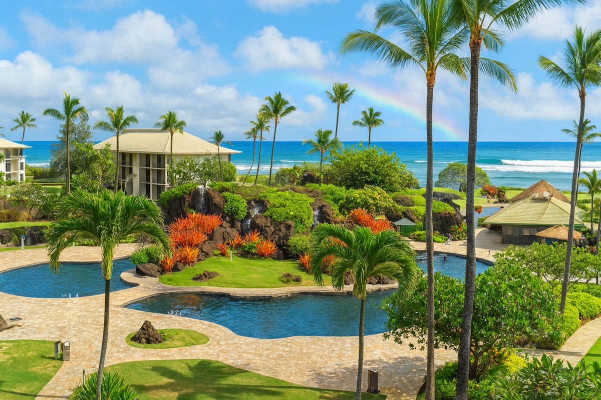 Beautiful, Botanical Paradise, Just Steps from an Ocean Side Pool, Hot-Tub & Cabanas. Walk out to our sandy, ocean beaches & famous bike path from your private lanai. No daily resort/parking fees. Includes A/C, cooler/beach chairs, gear & BBQ Poolside grills. Central location, access both the south & north shores. Right next to kauai’s only beachside bar and restaurant & the coconut grove marketplace w/restaurants, grocery, & shops. Down from Wailua River and just 10 min away from Airport.